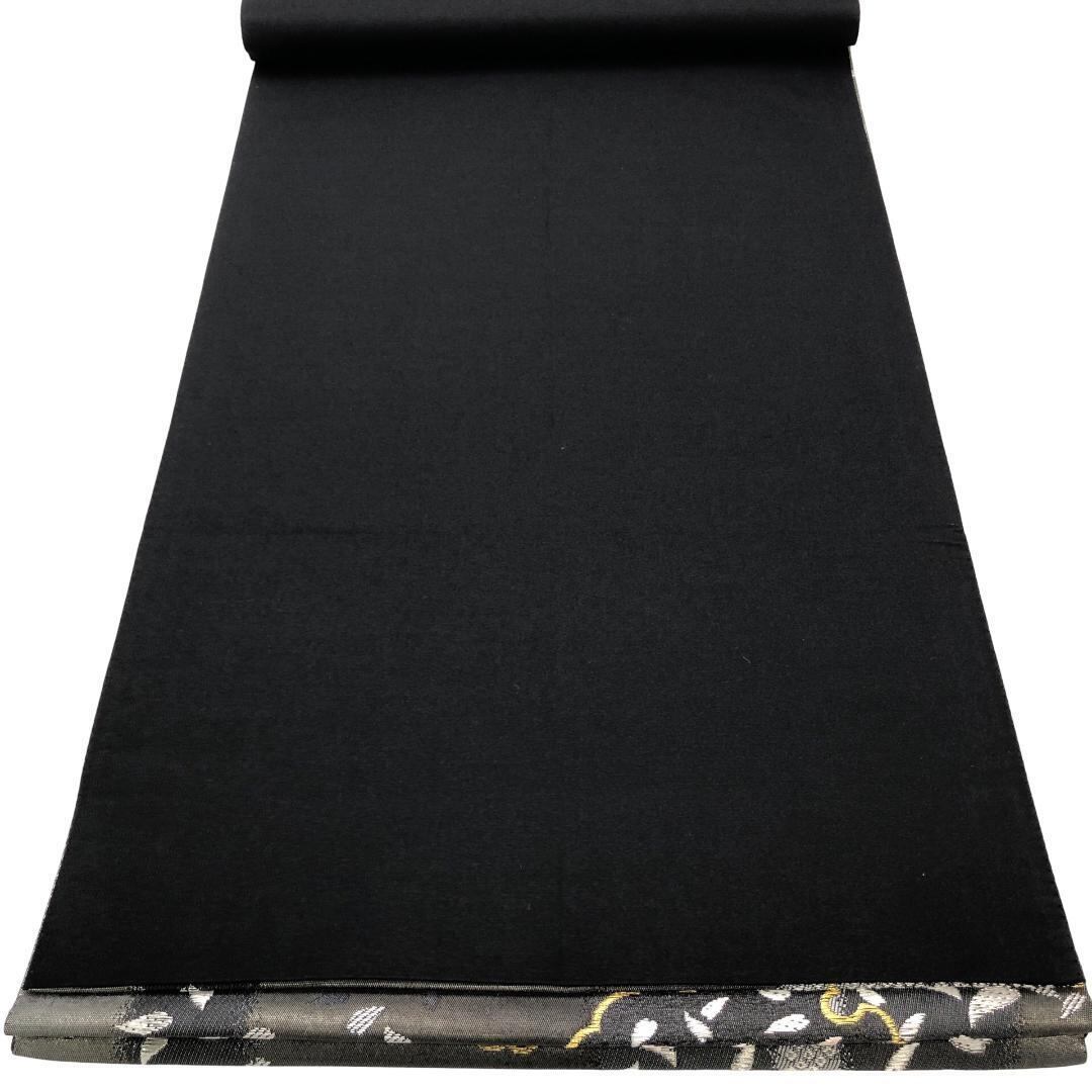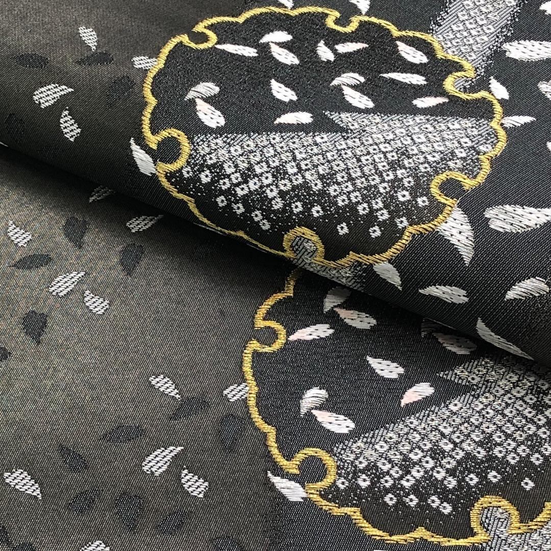 墨色の落ち着いたお色味、雪輪や花びら模様の柄裄がデザインされたモダンな雰囲気の素敵なお品でございます。