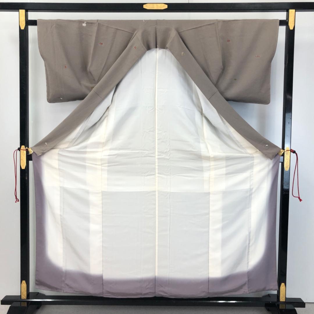 小紋 飛び柄 刺繍 干支柄 縮緬 木枯茶色 ガード加工 K-4661 着物 きもの kimono 和服 和装 中古 リサイクル着物 【送料無料】