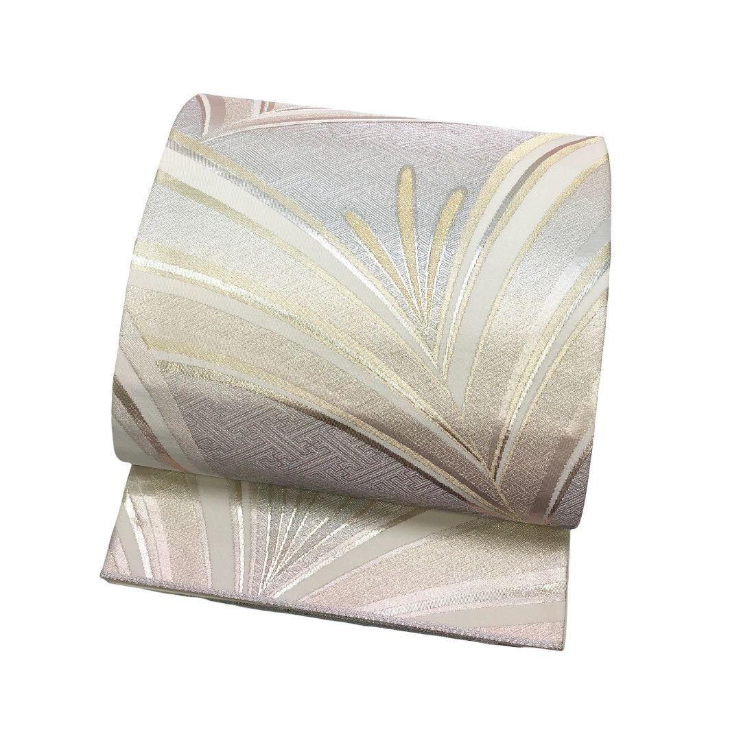 袋帯 羽模様 紗綾型地模様 金銀糸 銀色 O-5002 着物 きもの kimono 和服 和装 中古 リサイクル着物 【送料無料】