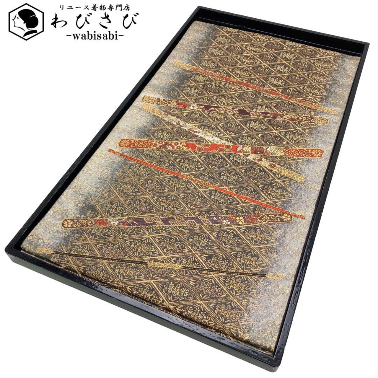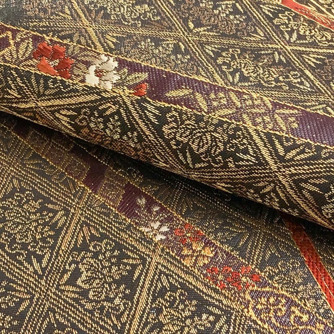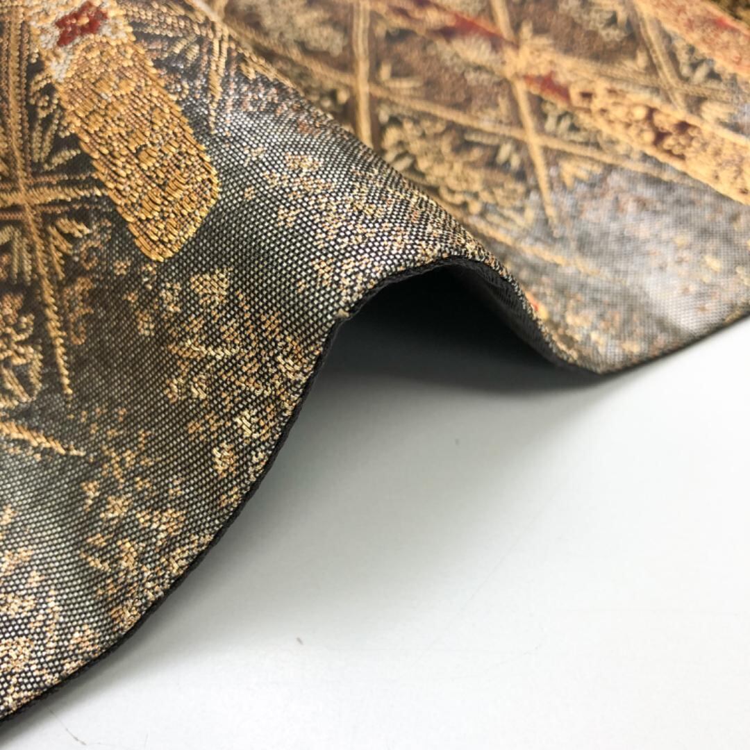 金糸が使われた落ち着いた色彩、菱形に桐の花柄模様がデザインされた素敵なお品でございます。