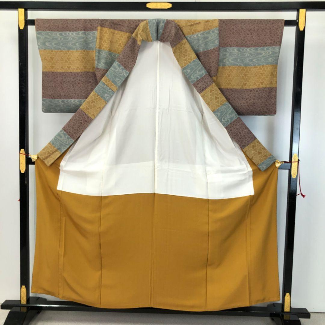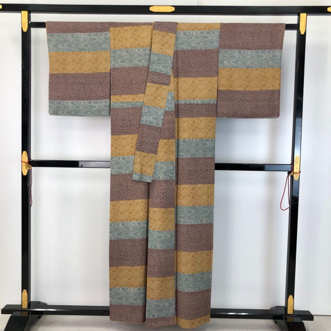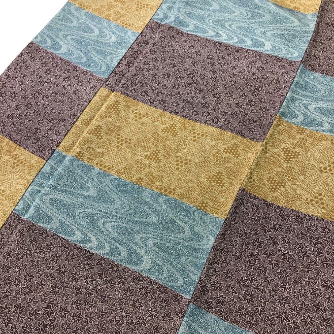小紋 寄せ柄 毘沙門亀甲 紅葉 流水 縮緬 K-4636 着物 きもの kimono 和服 和装 中古 リサイクル着物 【送料無料】