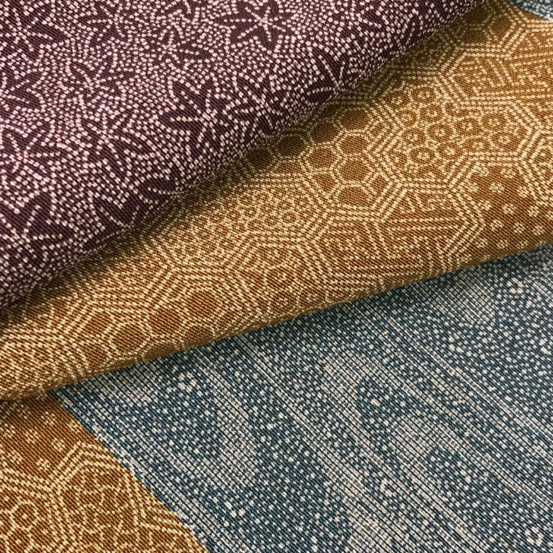 雰囲気の良い多彩なお色味の縮緬地、流水、紅葉、毘沙門亀甲などの寄せ柄の柄行がデザインされた素敵なお品でございます。