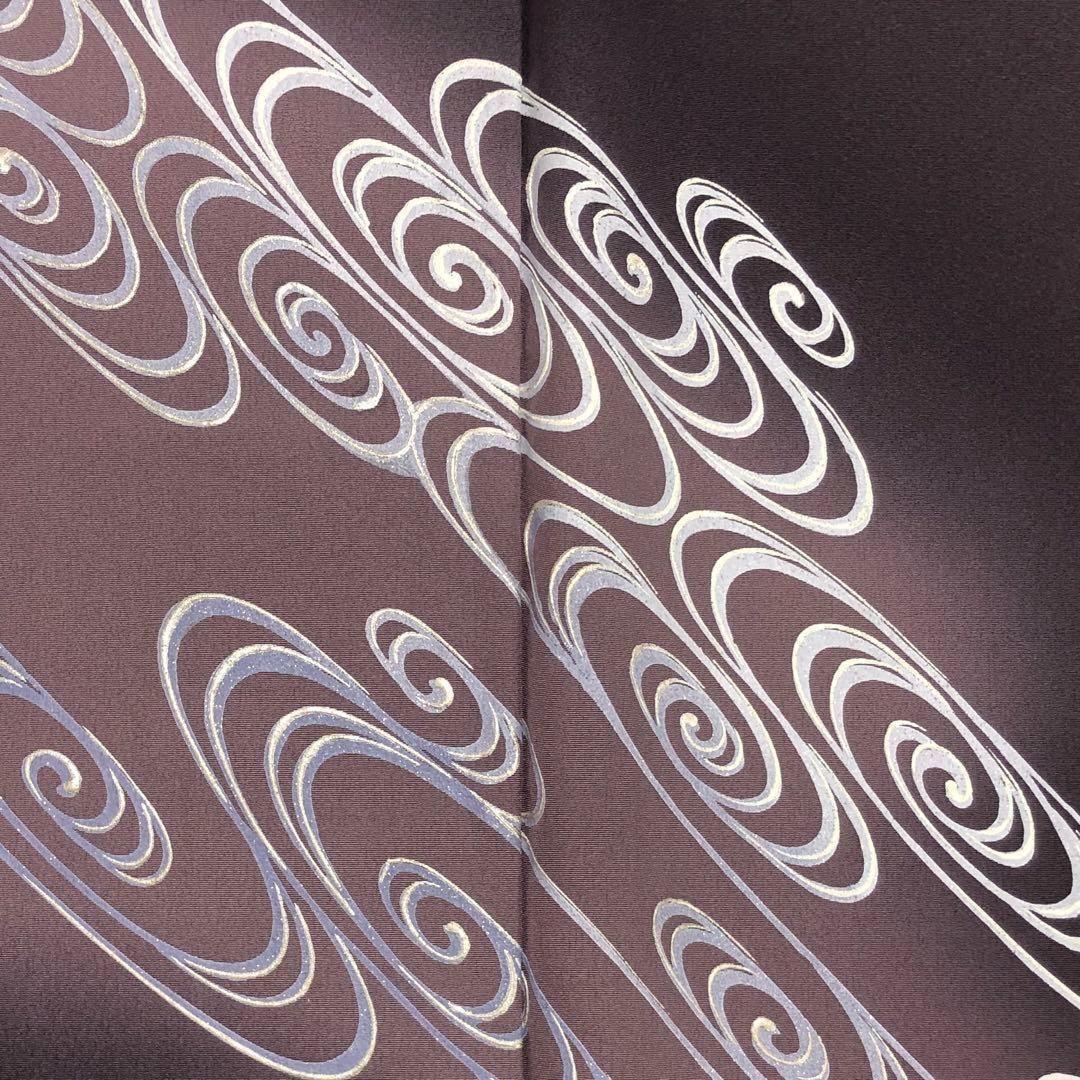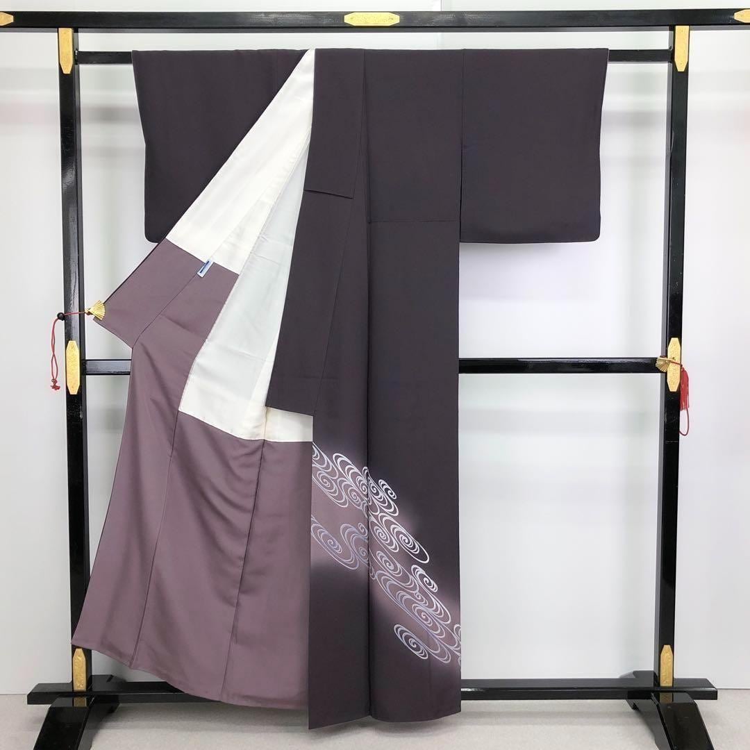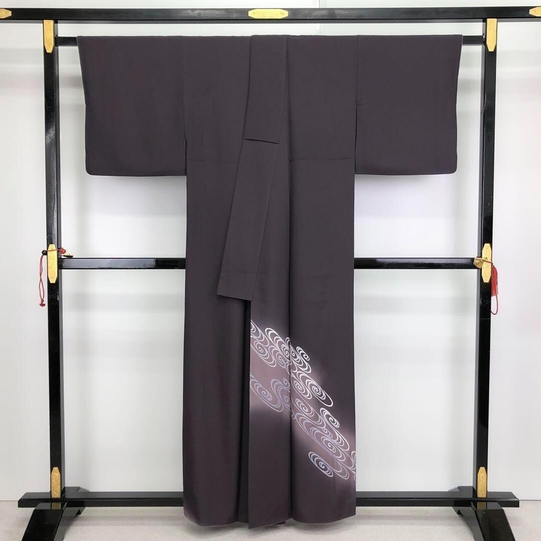 付下げ 金彩友禅 京金彩 華陽 斜め渦模様 濃紫色 K-4648 着物 きもの kimono 和服 和装 中古 リサイクル着物 【送料無料】