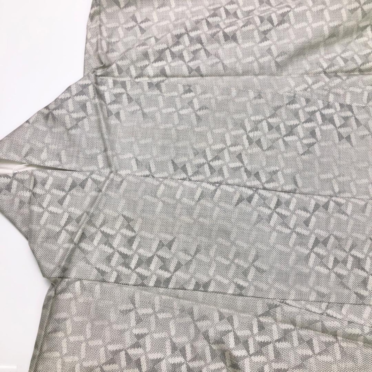 薄鼠色の上品なお色味に抽象織模様がデザインされた雰囲気の良い素敵な柄裄のお品でございます。
