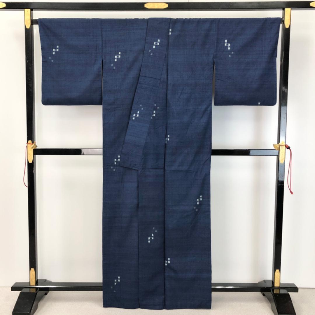 藍染の美しい藍色に雰囲気の良い絣模様がデザインされた素敵な柄裄のお品でございます。