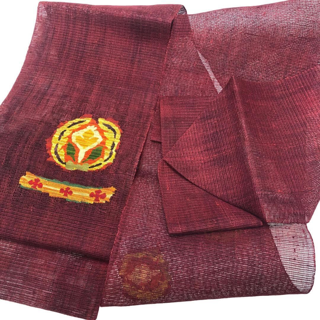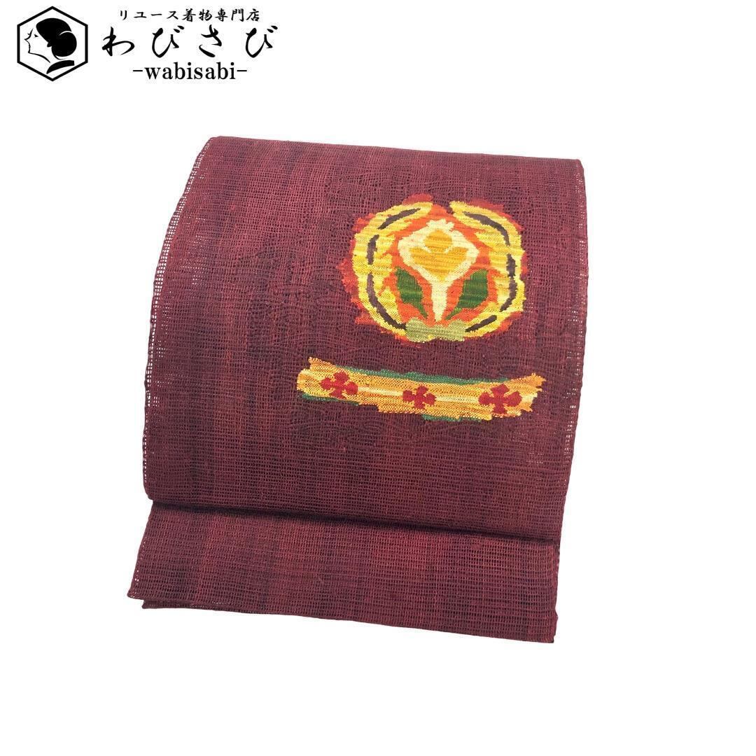 暗紅色の落ち着いたお色味に抽象花模様の織柄がデザインされた素敵なお品でございます。