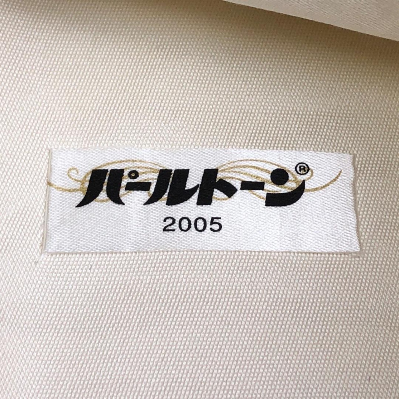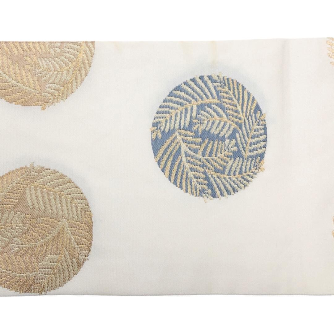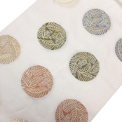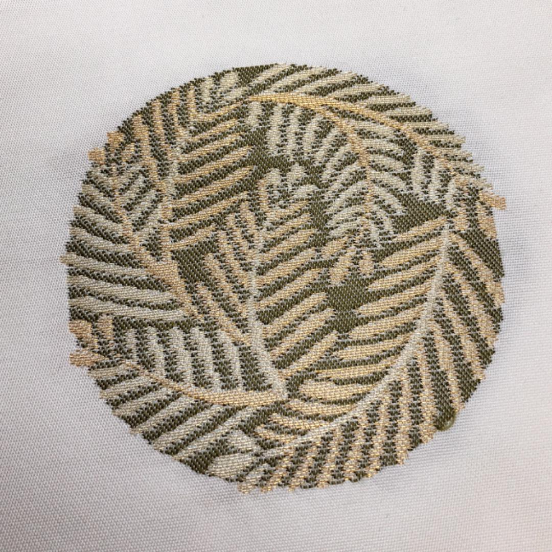 乳白色の上品なお色味、丸に葉模様の雰囲気の良い柄裄がデザインされた素敵なお品でございます。