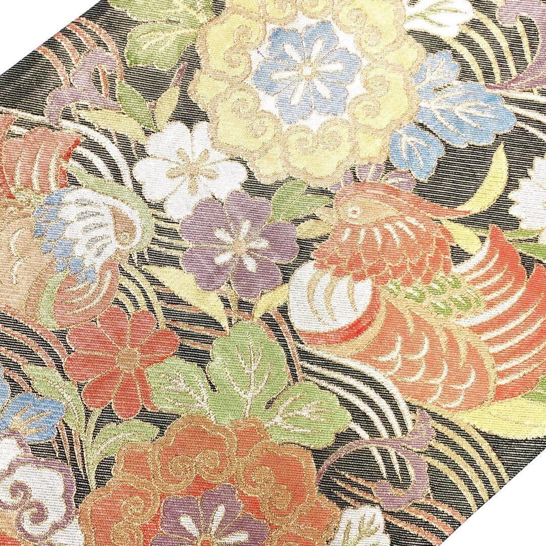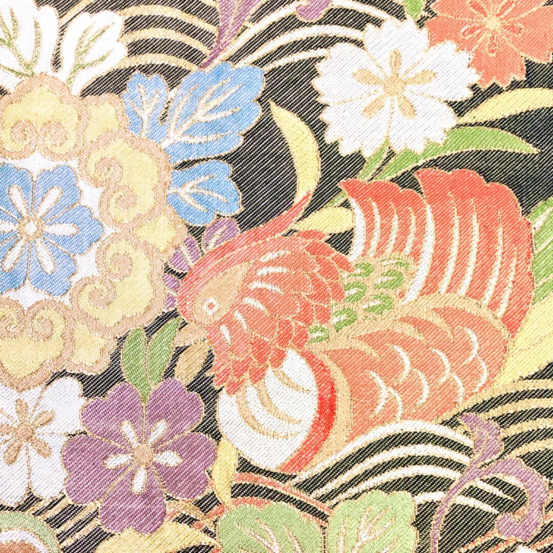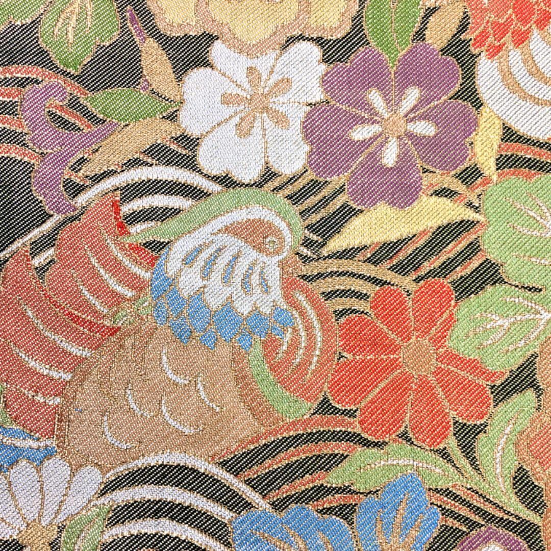 色鮮やかな花模様、鴛鴦、波がデザインされた煌びやかで素敵なお品でございます。