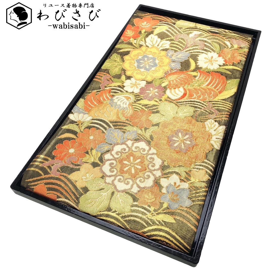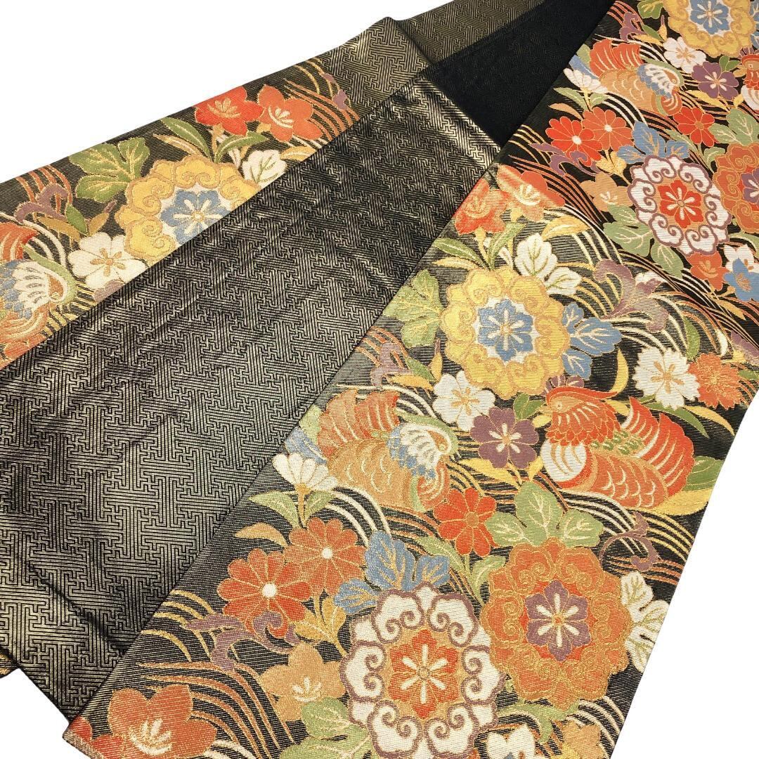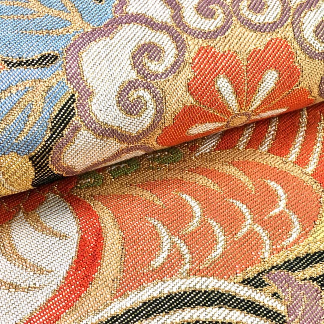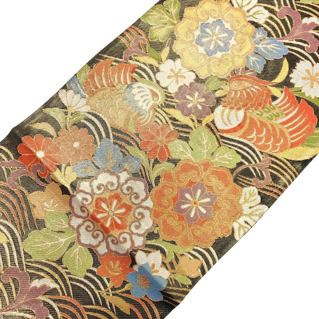 色鮮やかな花模様、鴛鴦、波がデザインされた煌びやかで素敵なお品でございます。