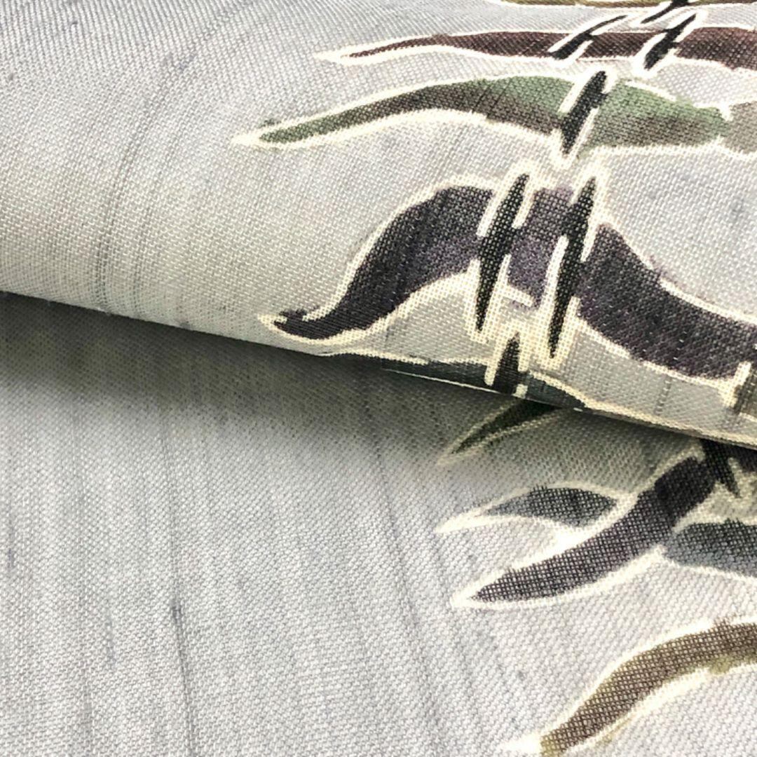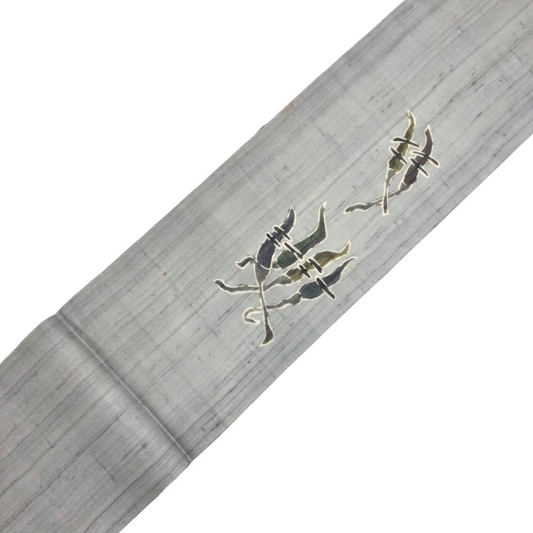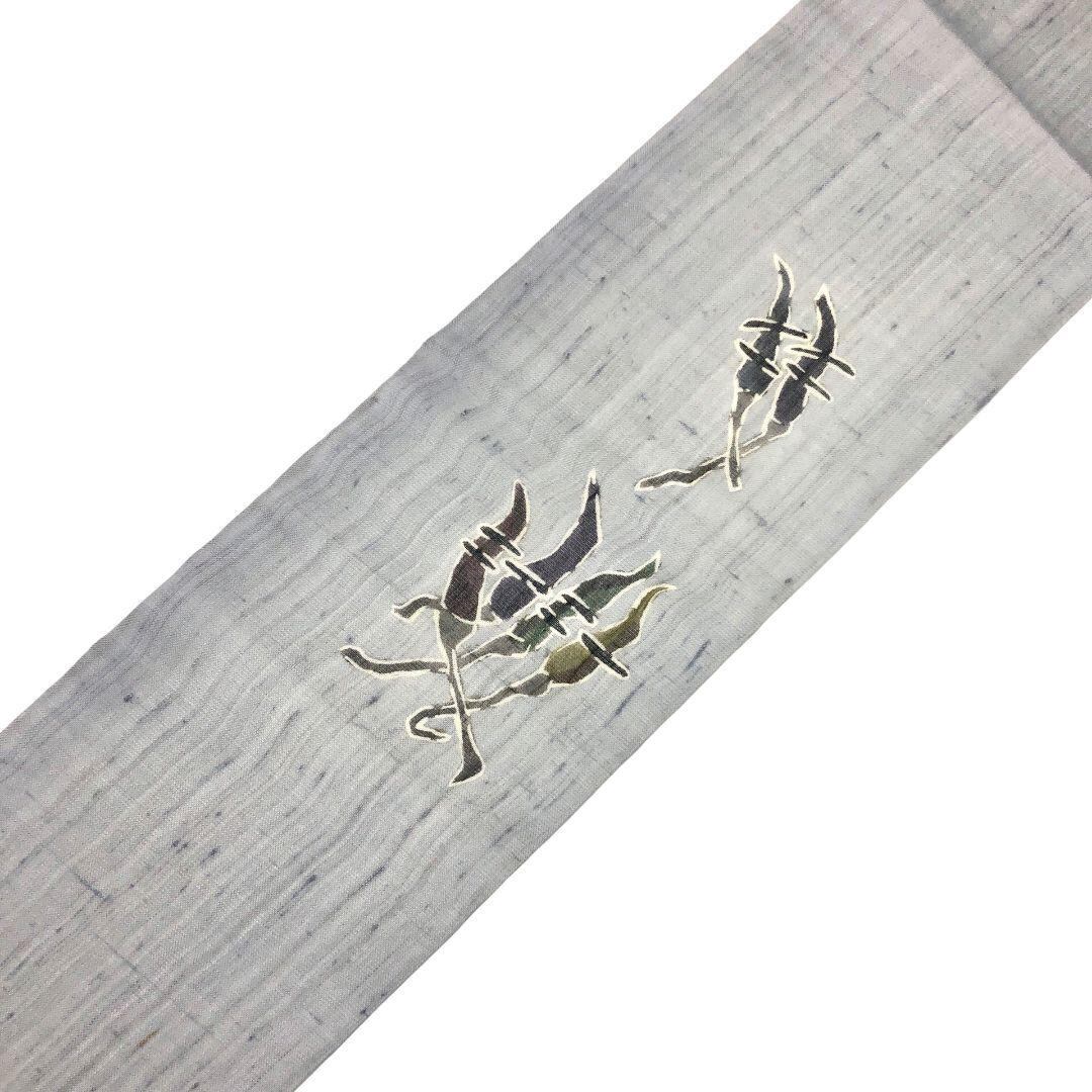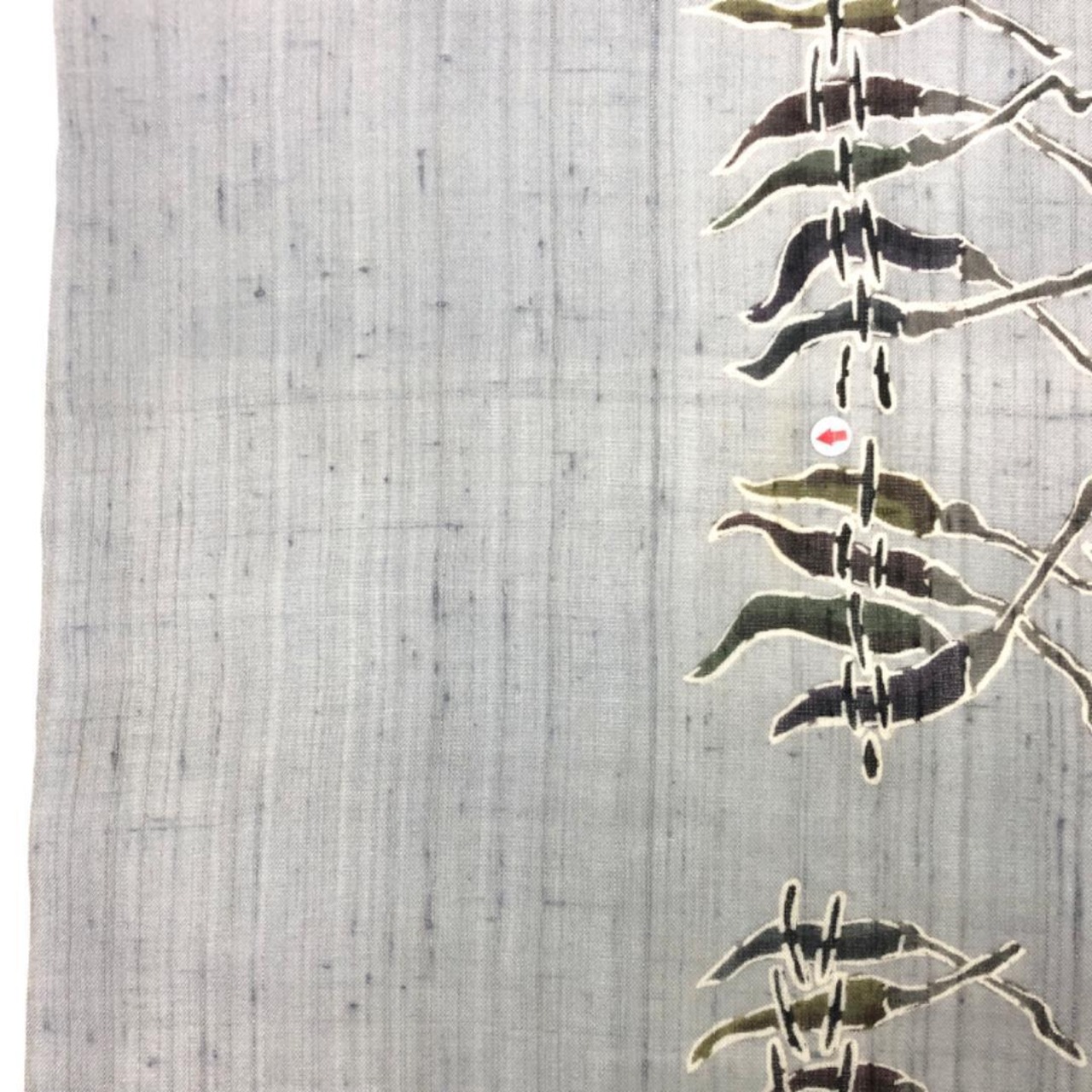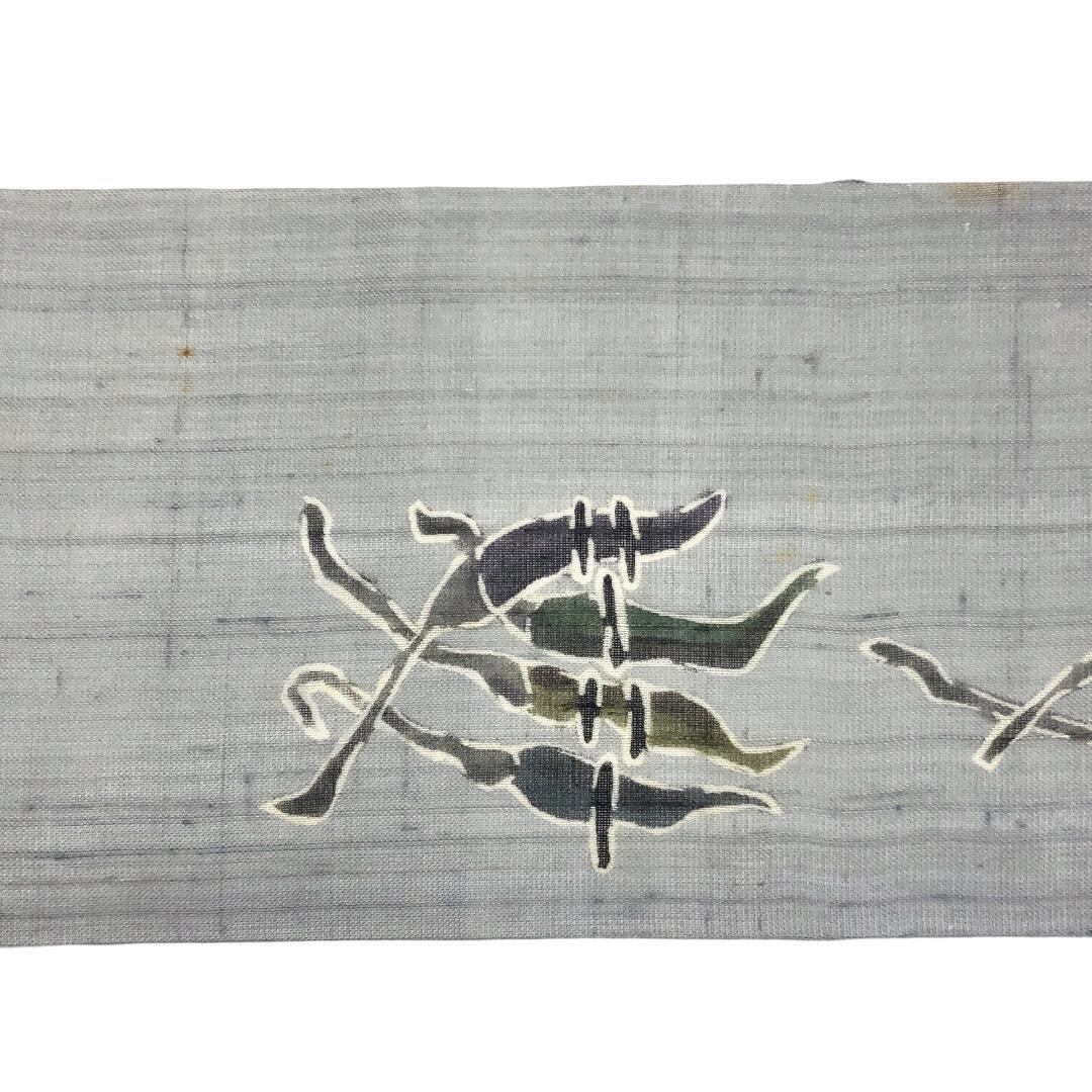 薄墨色の落ち着いたお色味、唐辛子の柄行がデザインされた素敵なお品でございます。