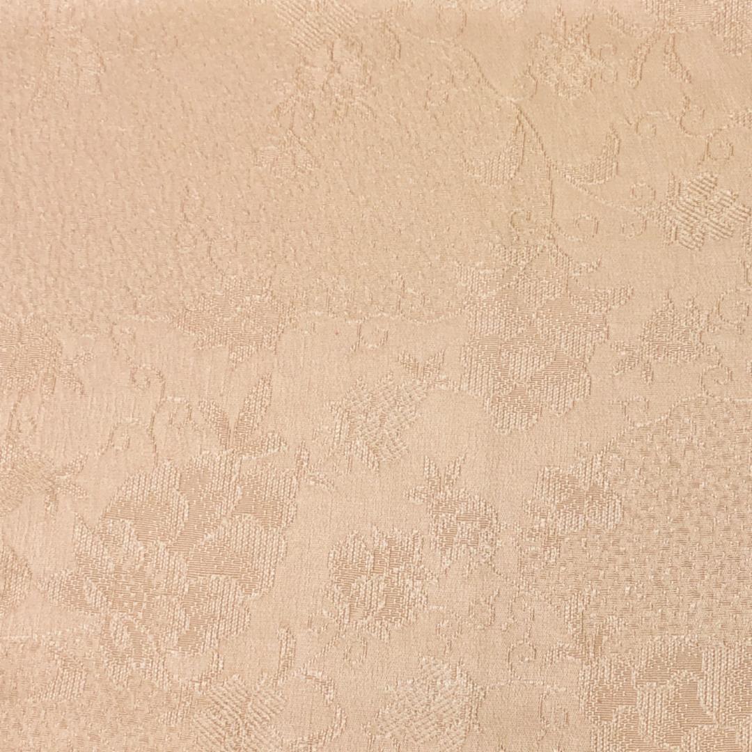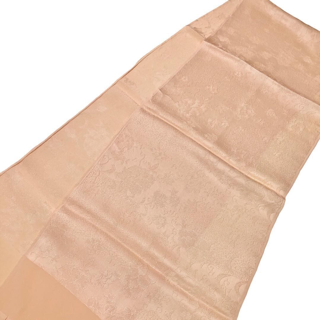 薄柿色のお色味に花唐草模様の柄裄がデザインされた素敵なお品でございます。