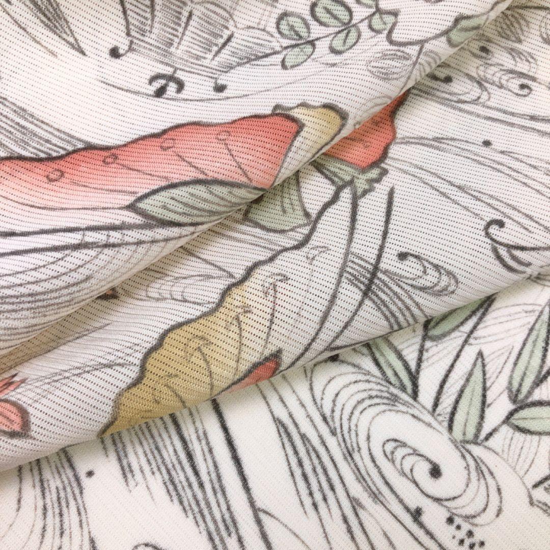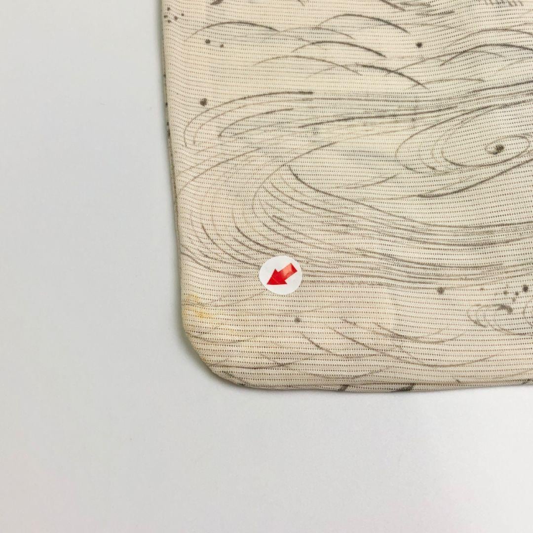 乳白色の上品なお色味に風景に蝶々、花模様、流水に萩などの柄裄がデザインされた素敵なお品でございます。