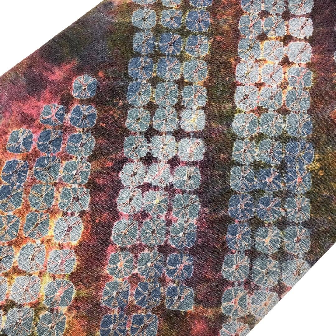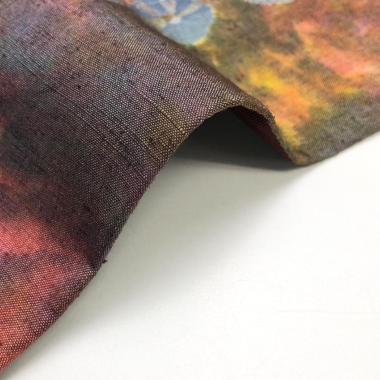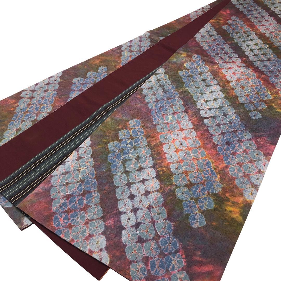落ち着きのある独特の色彩、雰囲気の良い漢方染の斜めの染め柄がデザインされた素敵なお品でございます。