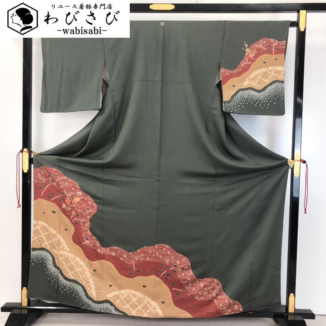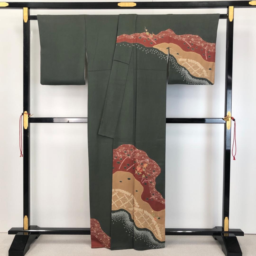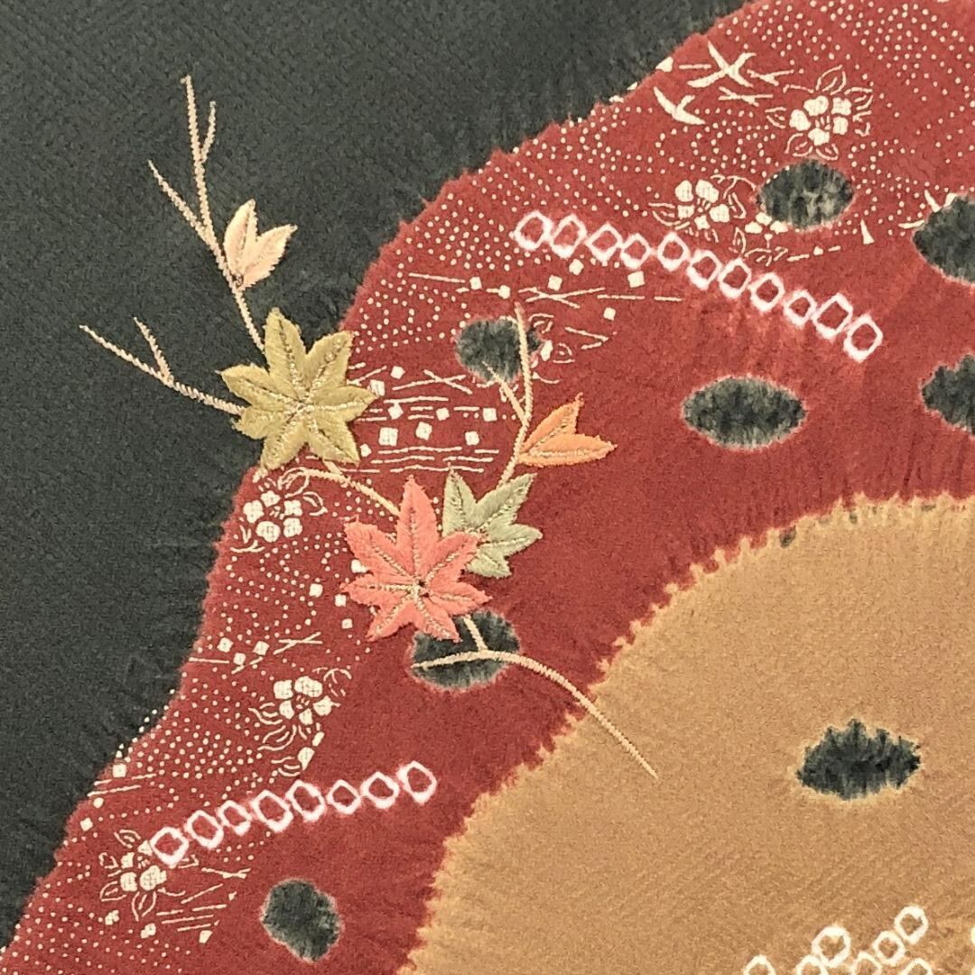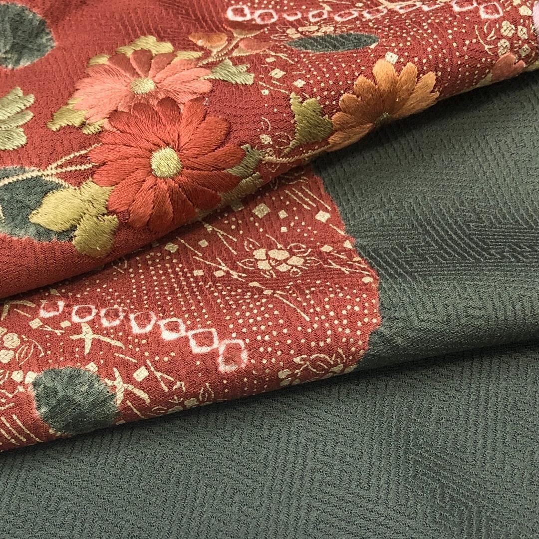 薩摩納戸色の落ち着きのあるお色味に絞り柄、刺繍の花模様などがデザインされた雰囲気の良い素敵なお品でございます。