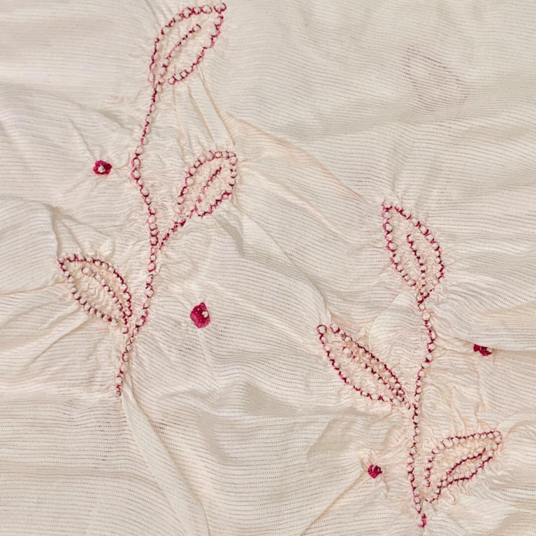 桜色のお色味に絞り柄で葉模様の柄裄がデザインされた素敵なお品でございます。
