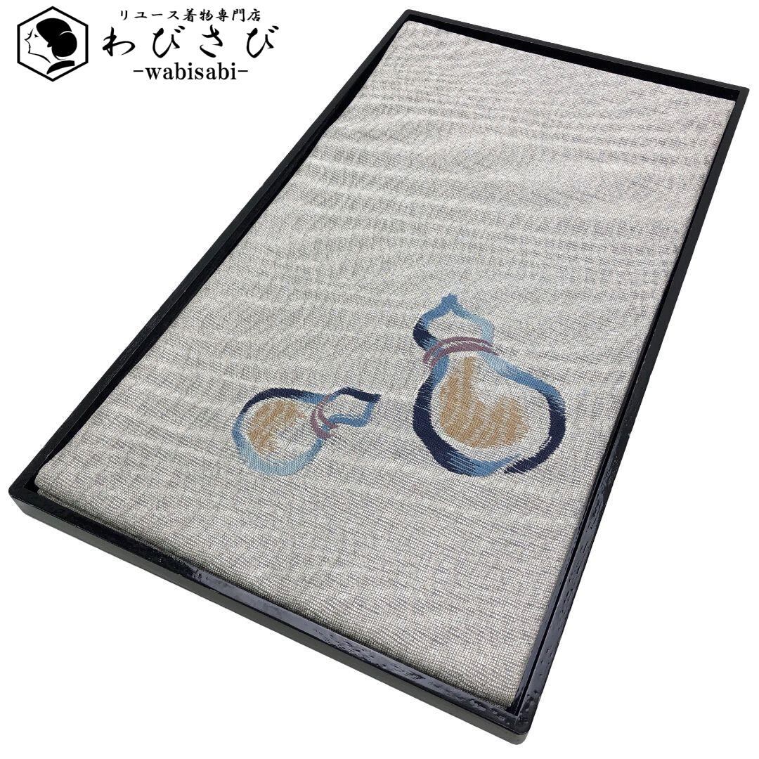袋帯 藍楽趣 灰汁発酵建本藍染 瓢箪 銀色 ガード加工 O-5033 着物 きもの kimono 和服 和装 中古 リサイクル着物 【送料無料】