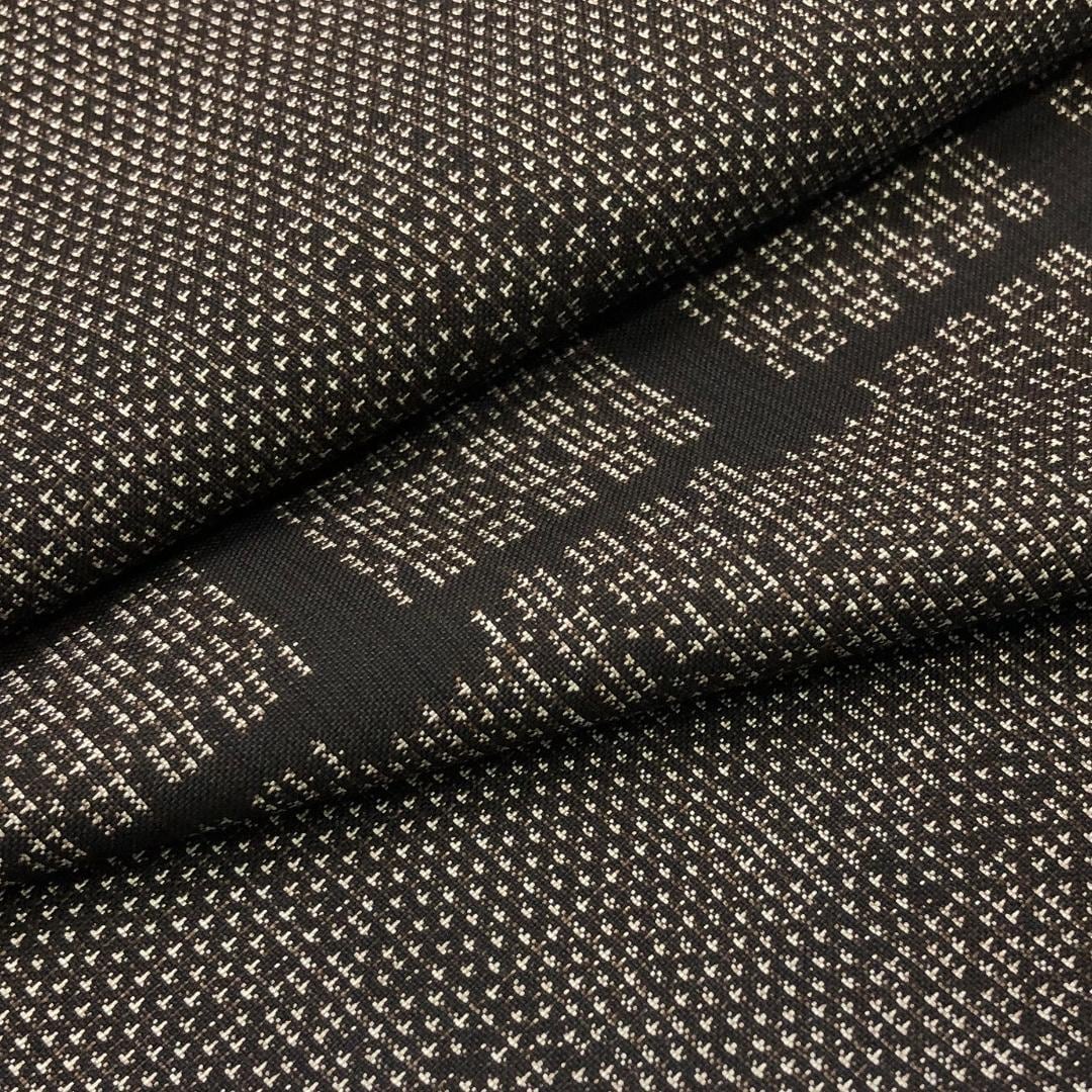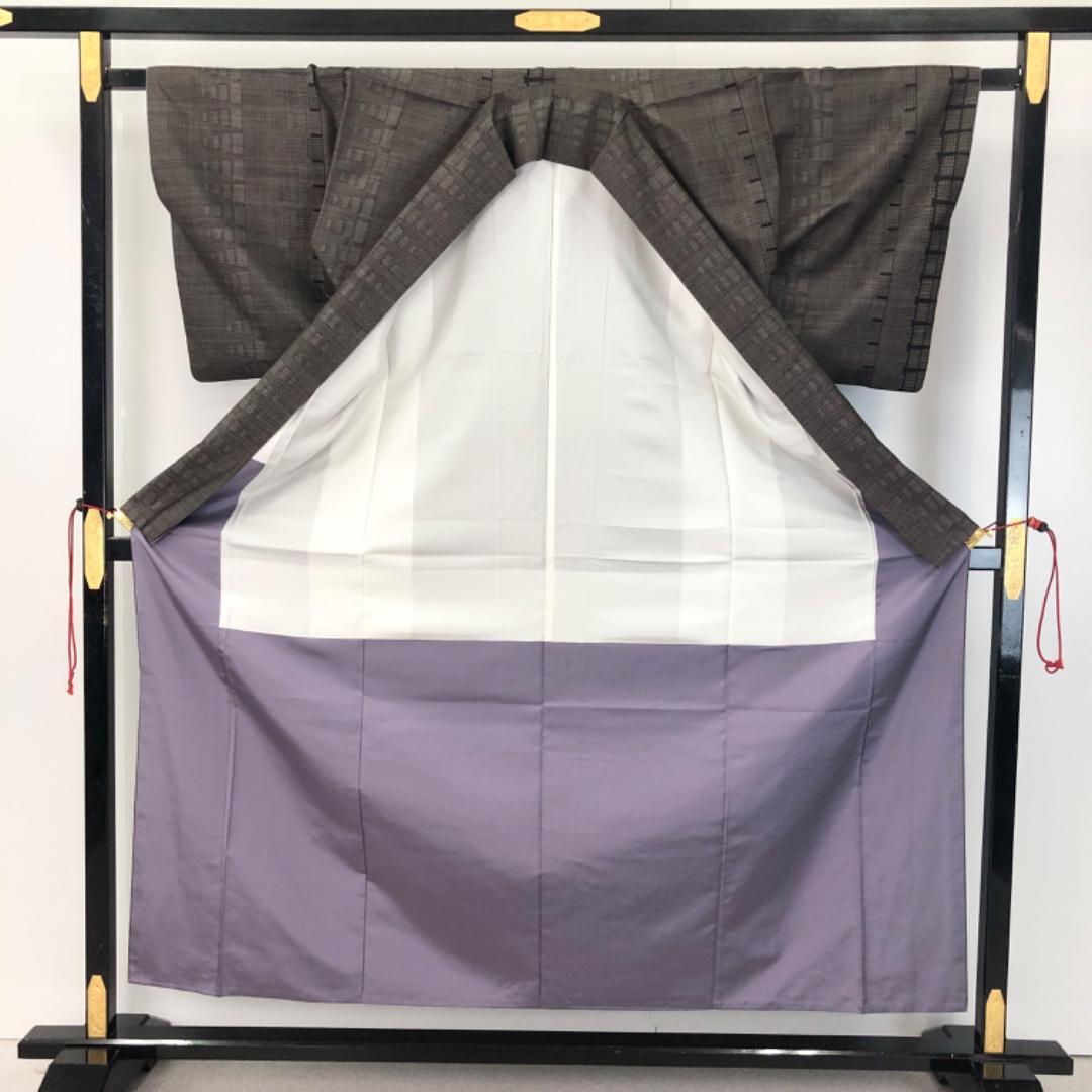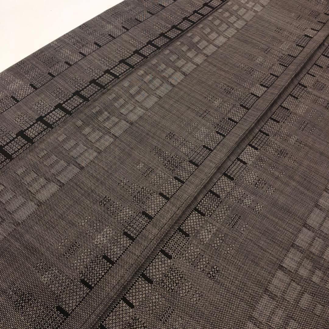 茶泥染の雰囲気の良いお色味に縦柄の幾何学模様がデザインされた素敵なお品でございます。