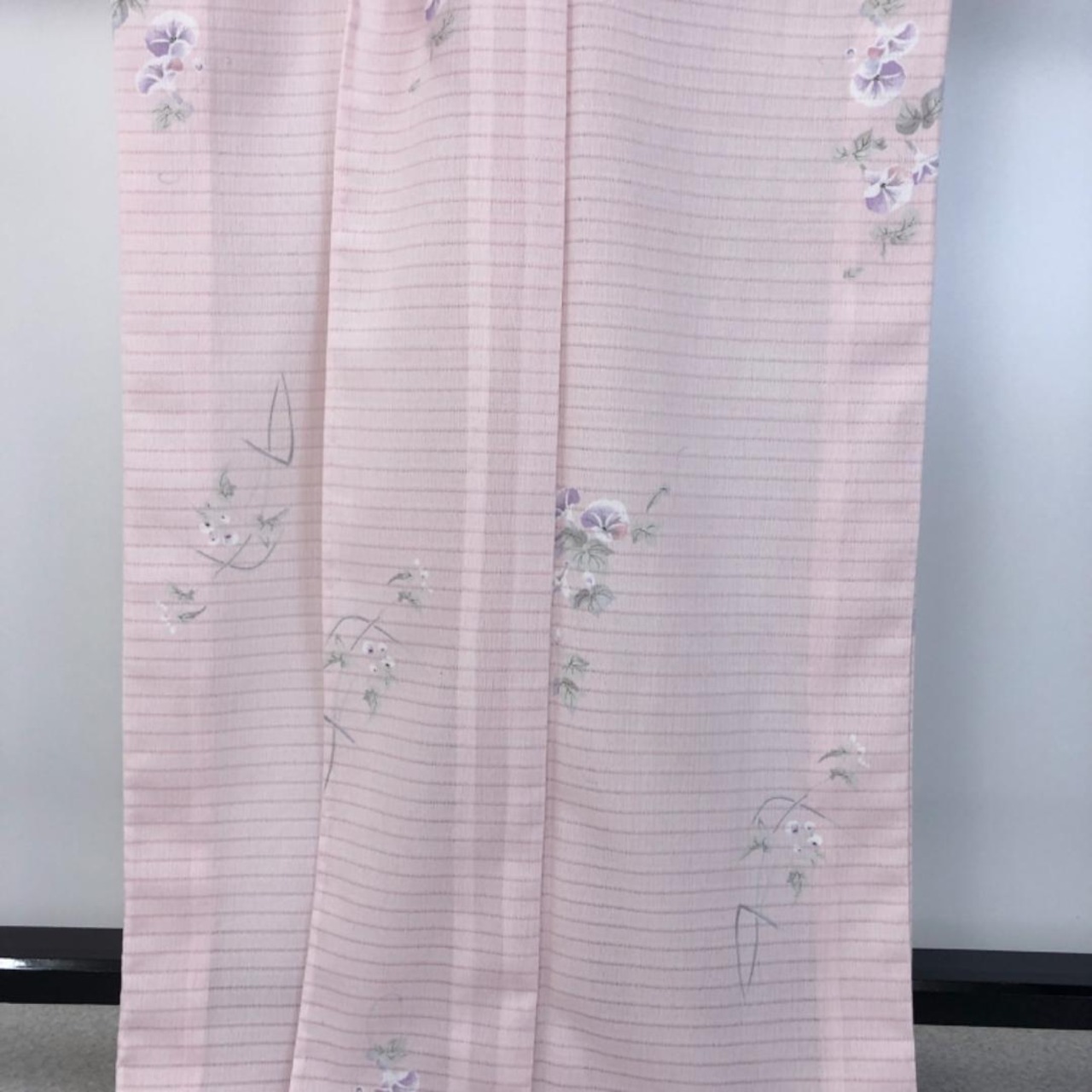 夏着物 小紋 絽 飛び柄 花模様 朝顔 桜色 K-4674 着物 きもの kimono 和服 和装 中古 リサイクル着物 【送料無料】