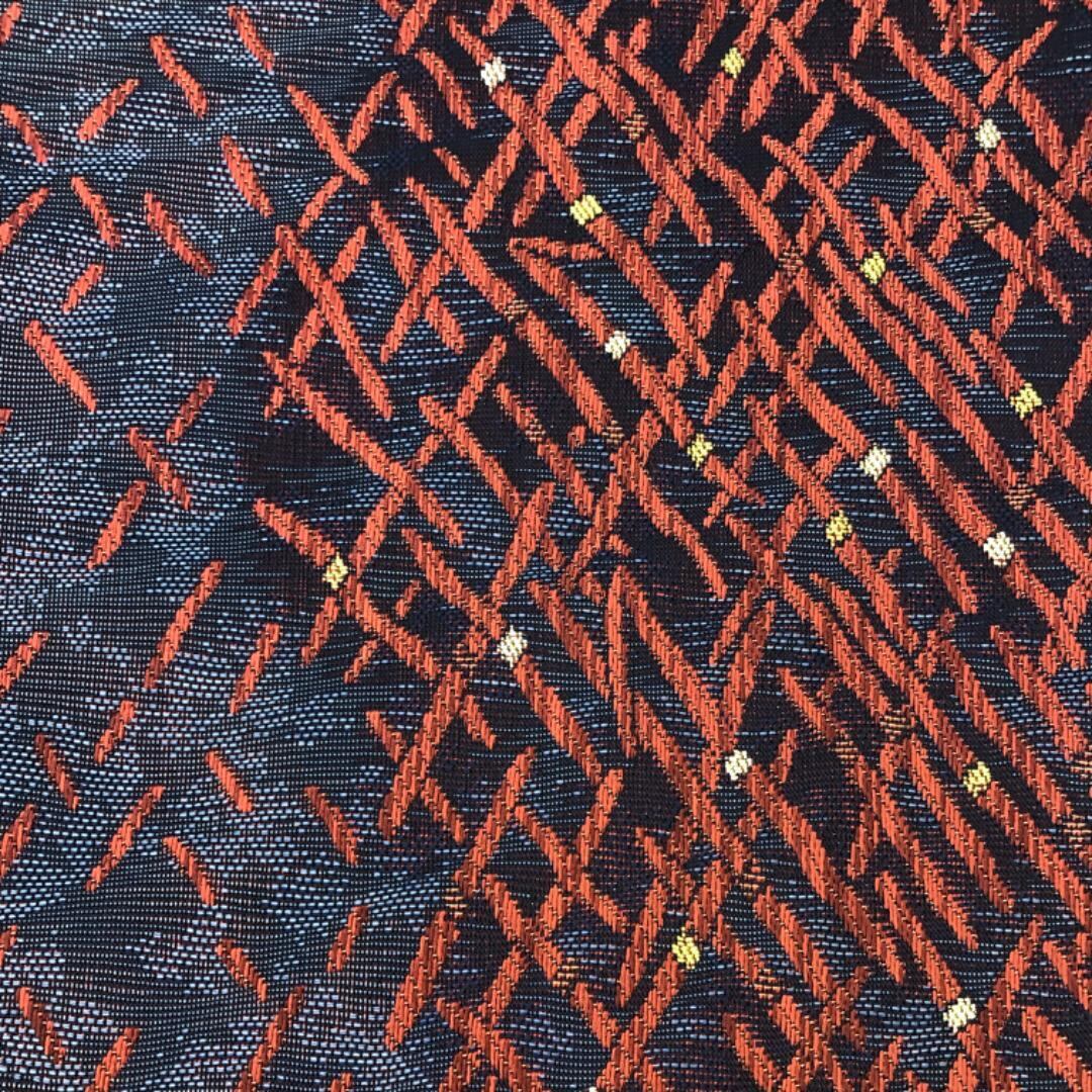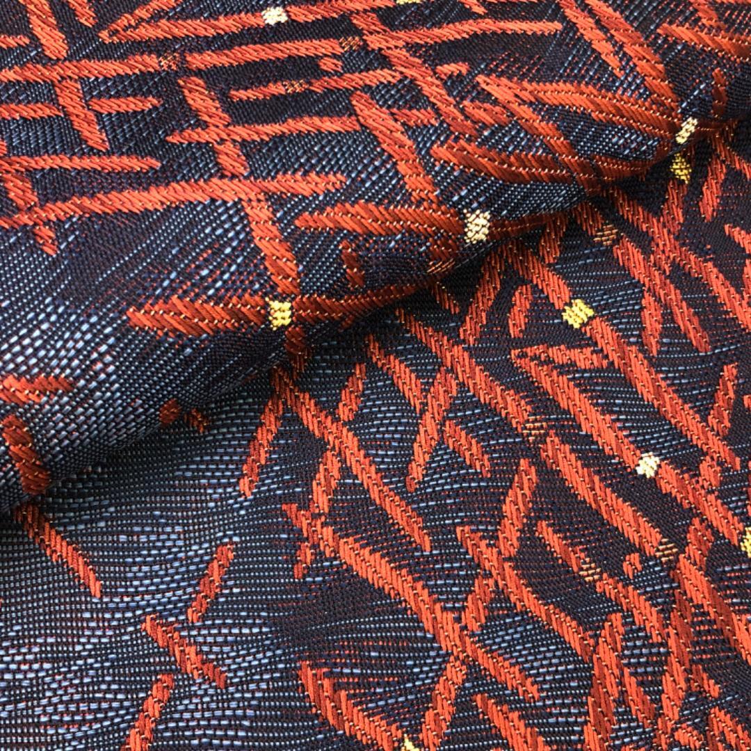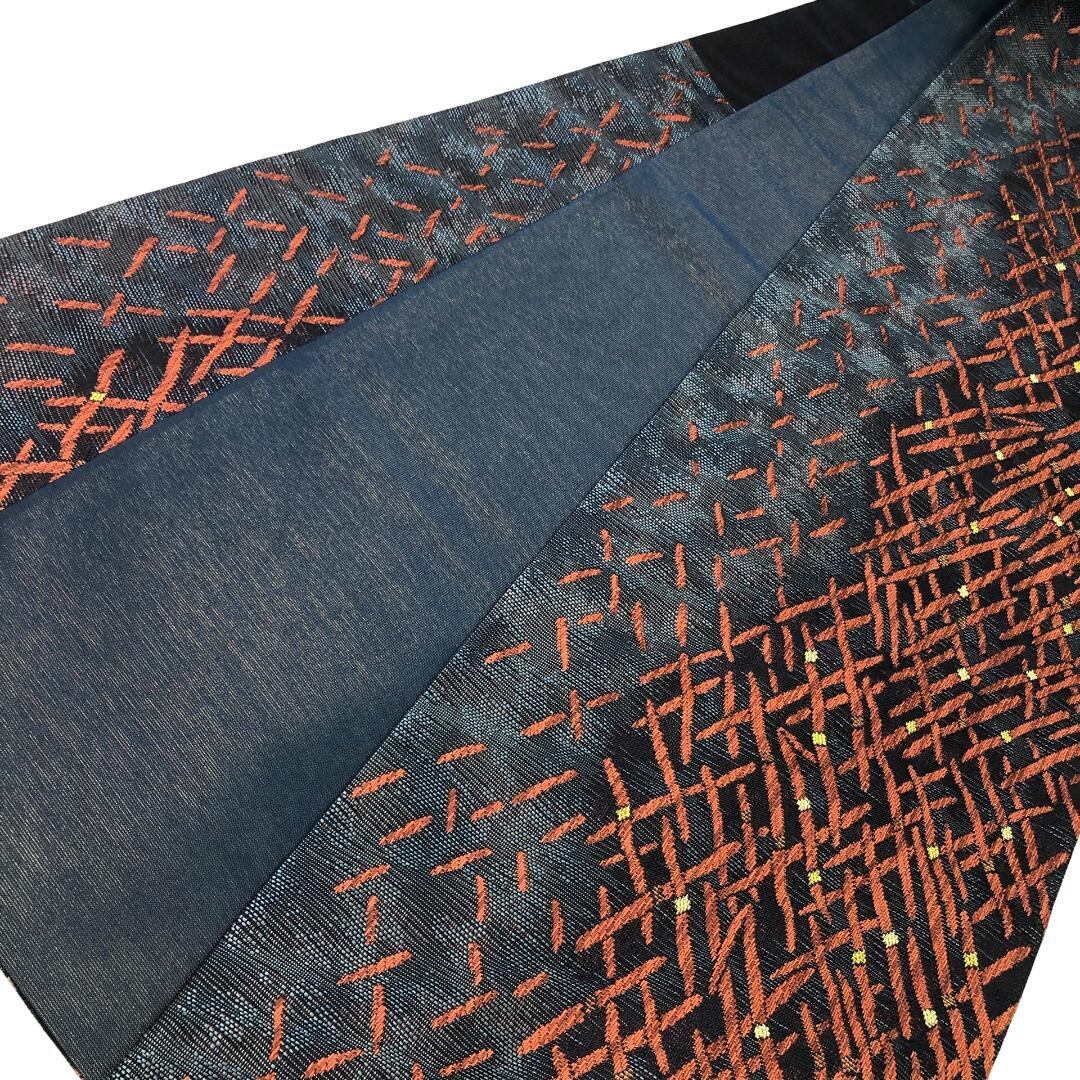 熨斗目色の落ち着いたお色味に抽象織模様の柄裄がデザインされた雰囲気の良い素敵なお品でございます。