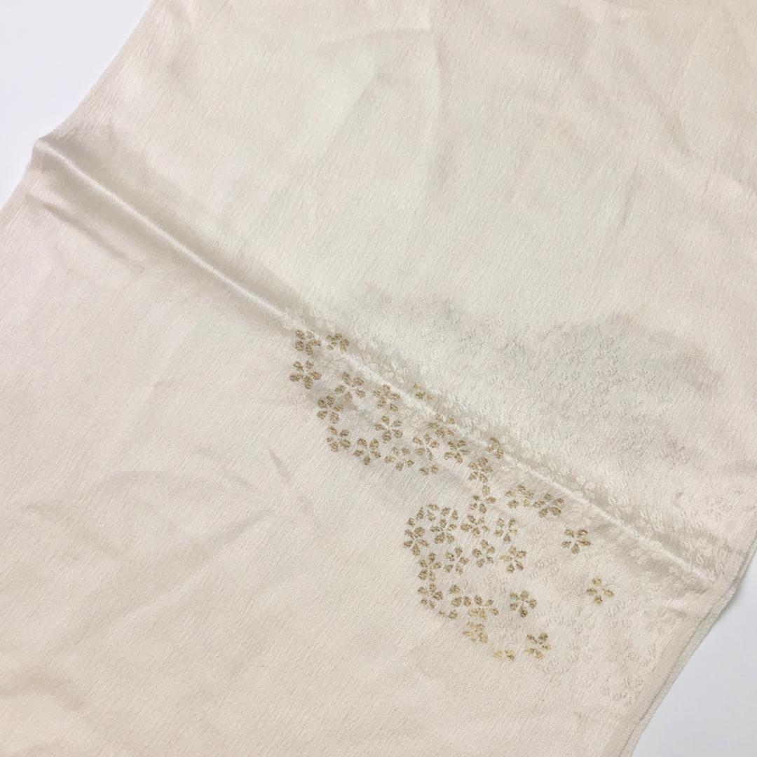 乳白色のお色味に金糸で小花模様の柄裄がデザインされた素敵なお品でございます。