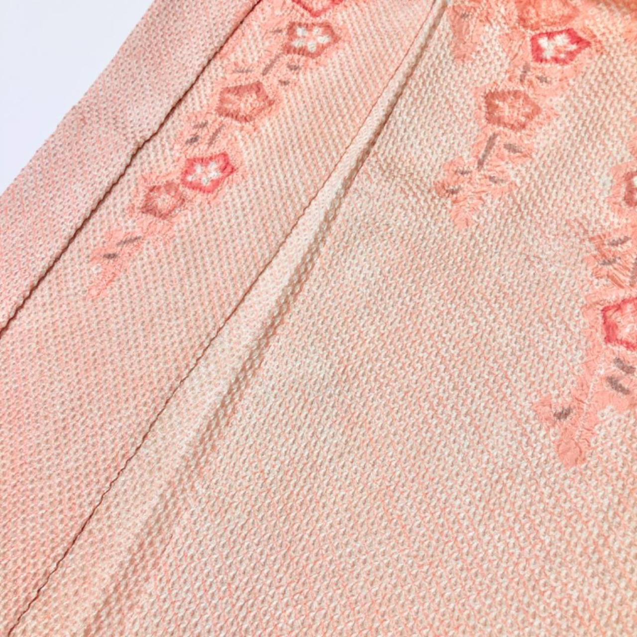 洗朱色のお色味の総絞り、花模様の柄裄がデザインされた素敵なお品でございます。