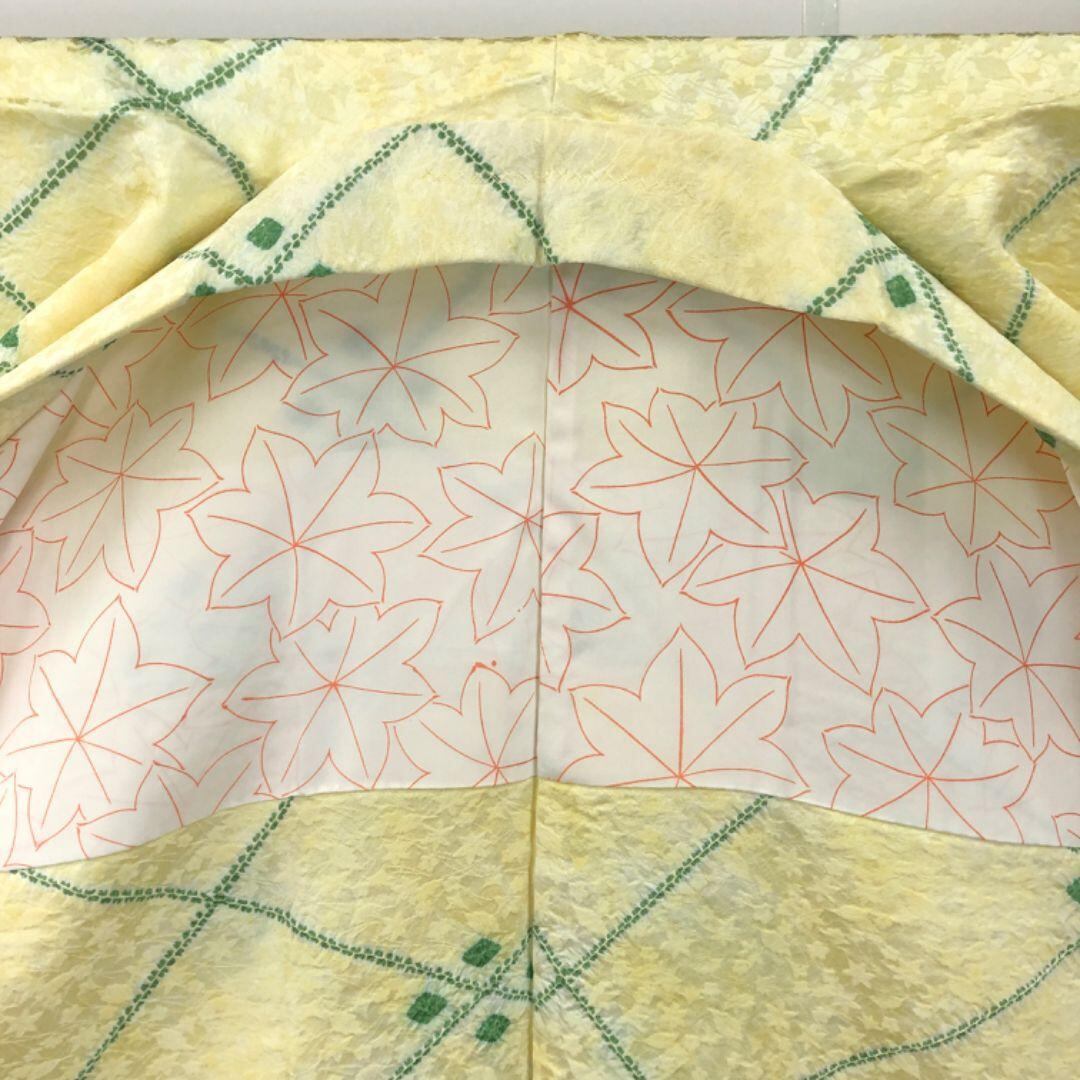 羽織 絞り 葉模様 花柄地模様 黄色 しつけ糸 H-4102 着物 きもの kimono 和服 和装 中古 リサイクル着物 【送料無料】