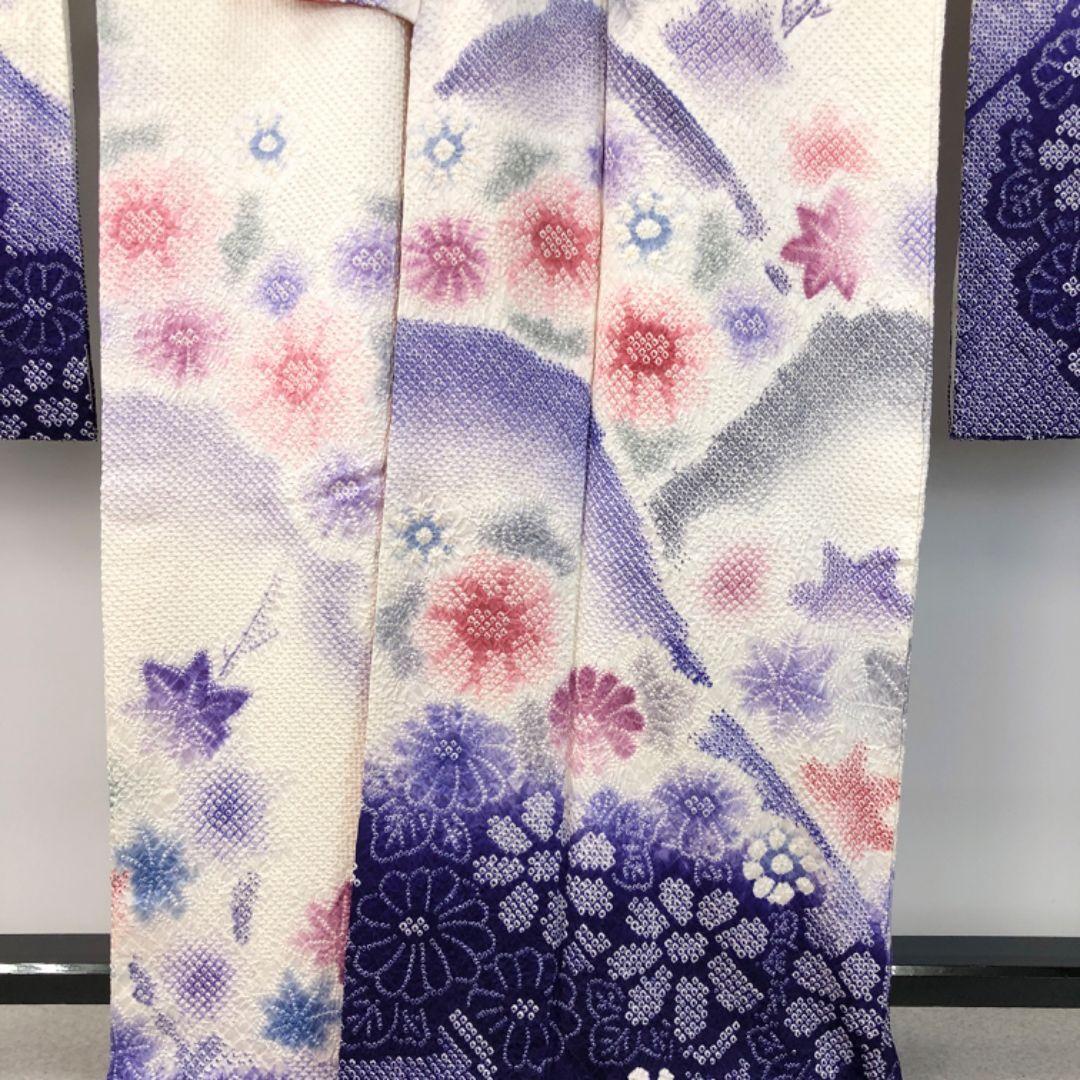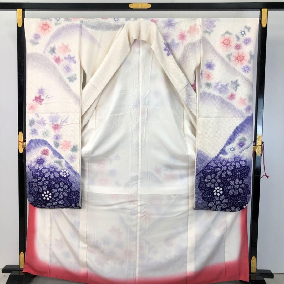 振袖 総絞り 色鮮やかな花柄模様 暈し染 乳白色 トールサイズ K-4655 着物 きもの kimono 和服 和装 中古 リサイクル着物 【送料無料】