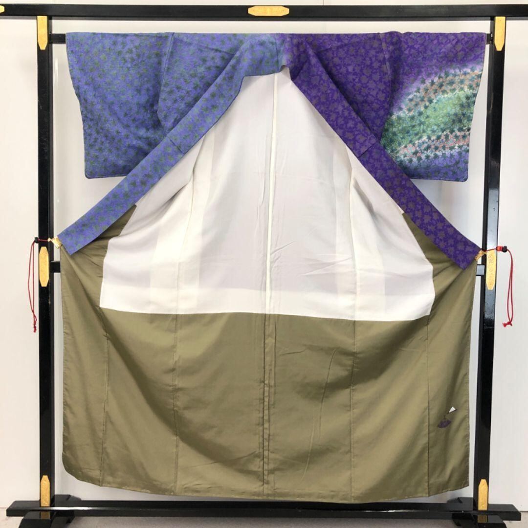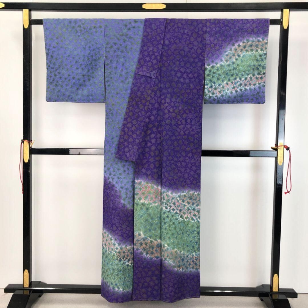 紫色ベースの独創的な色彩、印象的な染柄がデザインされた雰囲気の良い素敵なお品でございます。