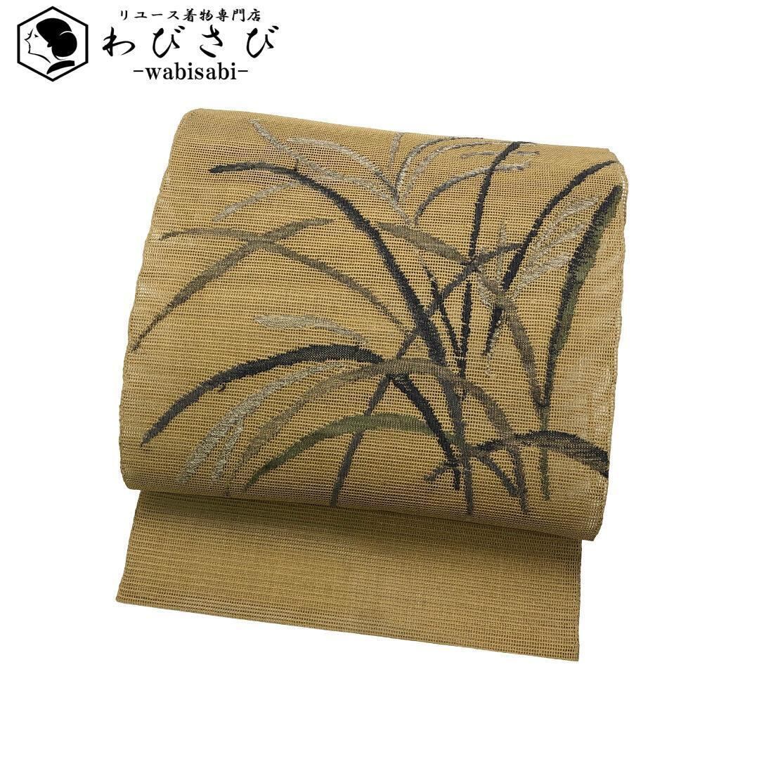 黄橡色の落ち着きのあるお色味にすすき模様の柄裄がデザインされた雰囲気の良い素敵なお品でございます。