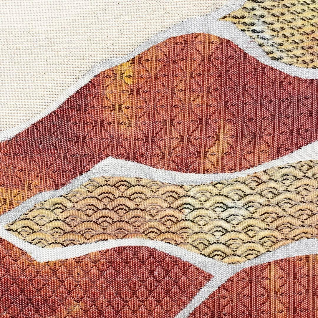 夏帯 名古屋帯 紗 霞模様 青海波 鳥の子色 O-5055 着物 きもの kimono 和服 和装 中古 リサイクル着物 【送料無料】