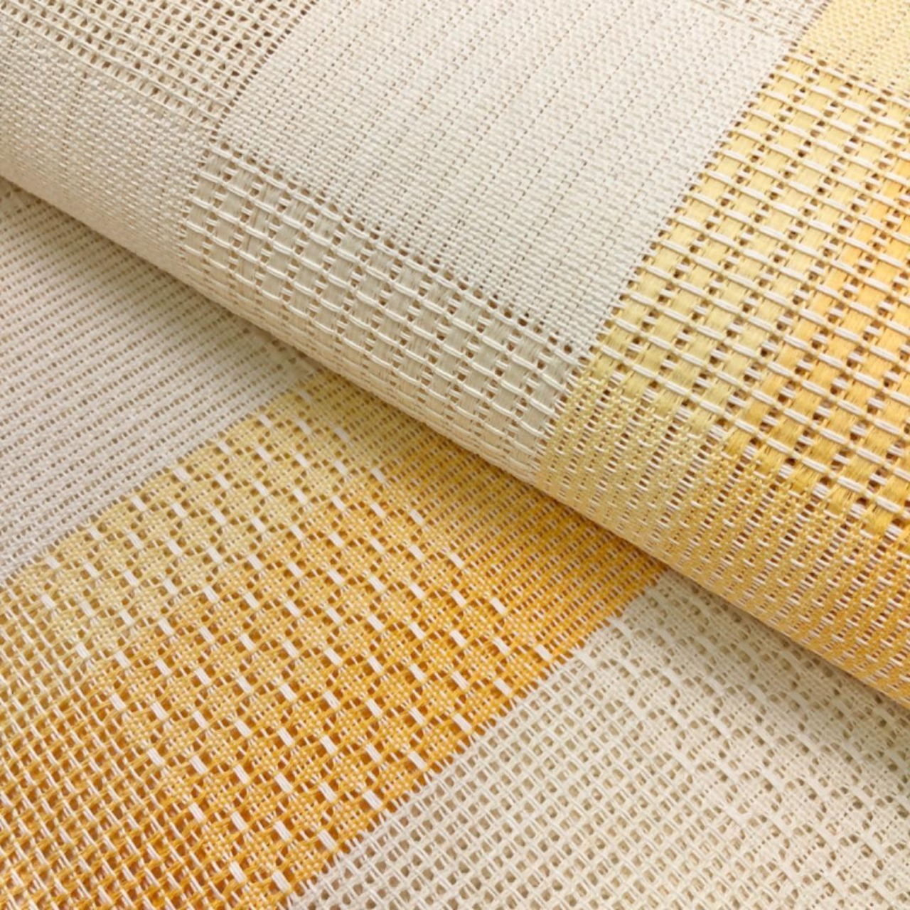 乳白色の上品なお色味の市松柄に1本の縦縞模様の柄裄がデザインされた素敵なお品でございます。