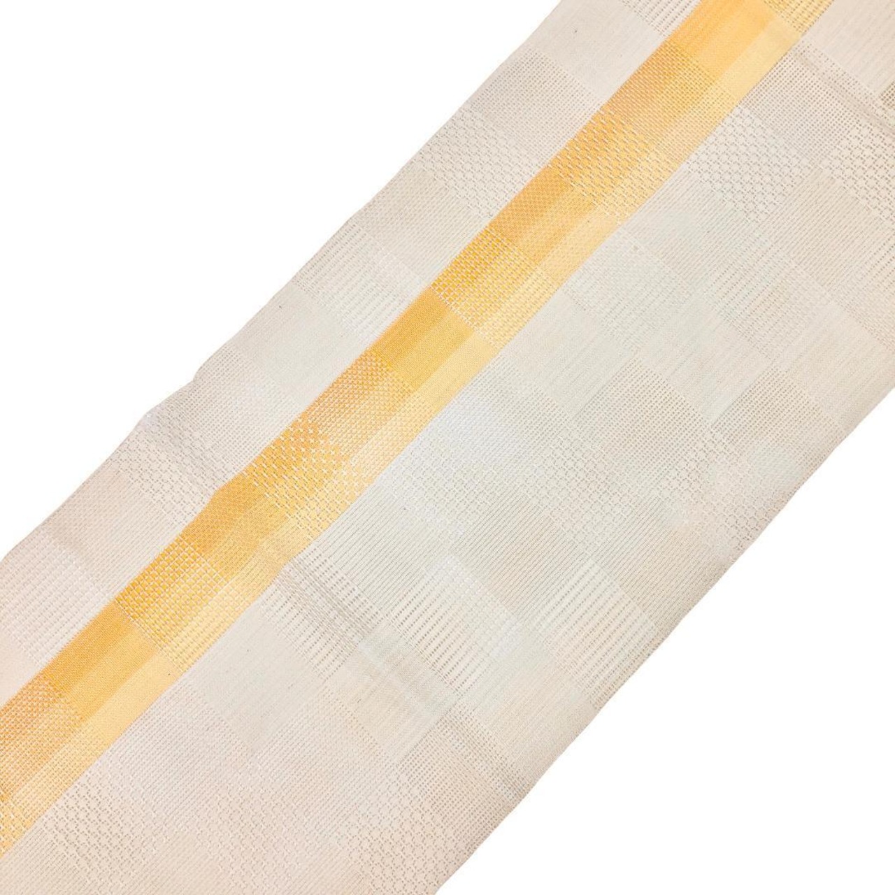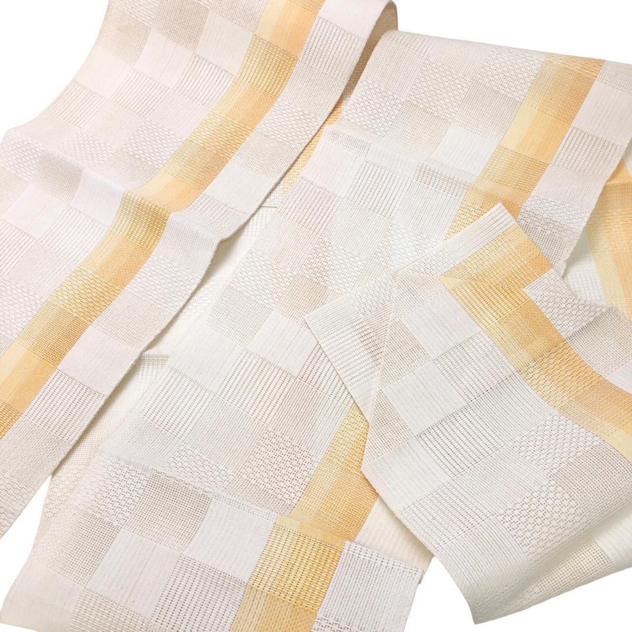 夏帯 名古屋帯 市松柄 縦縞模様 乳白色 O-5056 着物 きもの kimono 和服 和装 中古 リサイクル着物 【送料無料】