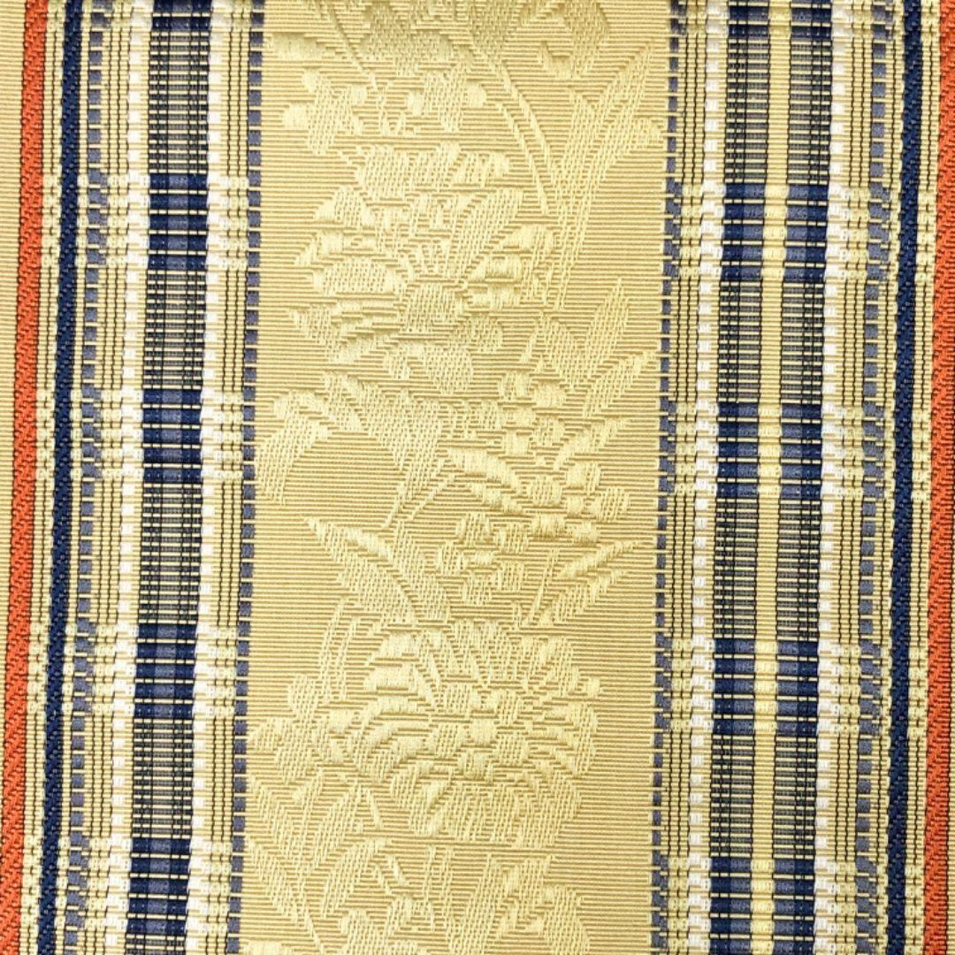 半幅帯 本場筑前博多織 証紙付 縦縞 花柄模様 麦藁色 D-2061 着物 きもの kimono 和服 和装 中古 リサイクル着物 【送料無料】