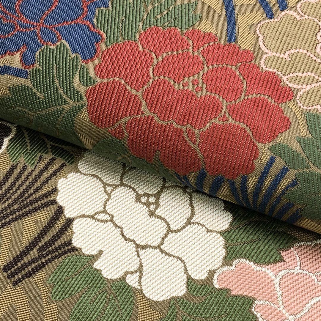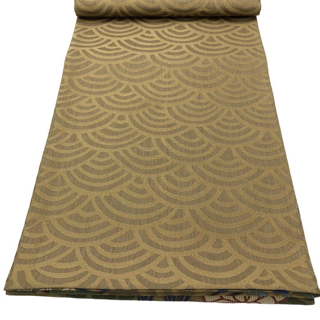 袋帯 西陣 となみ織物 織文類纂 牡丹青海波 国防色 O-5032 着物 きもの kimono 和服 和装 中古 リサイクル着物 【送料無料】