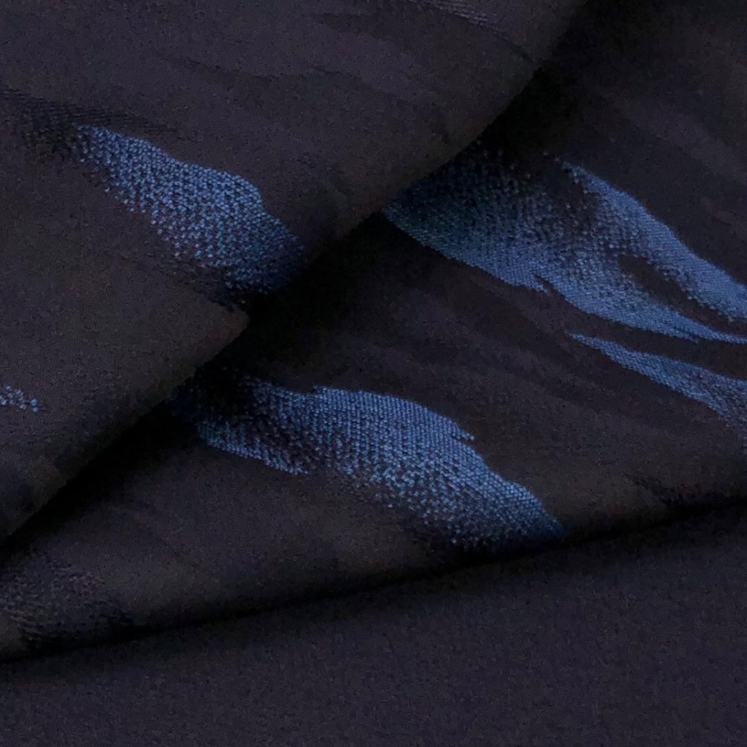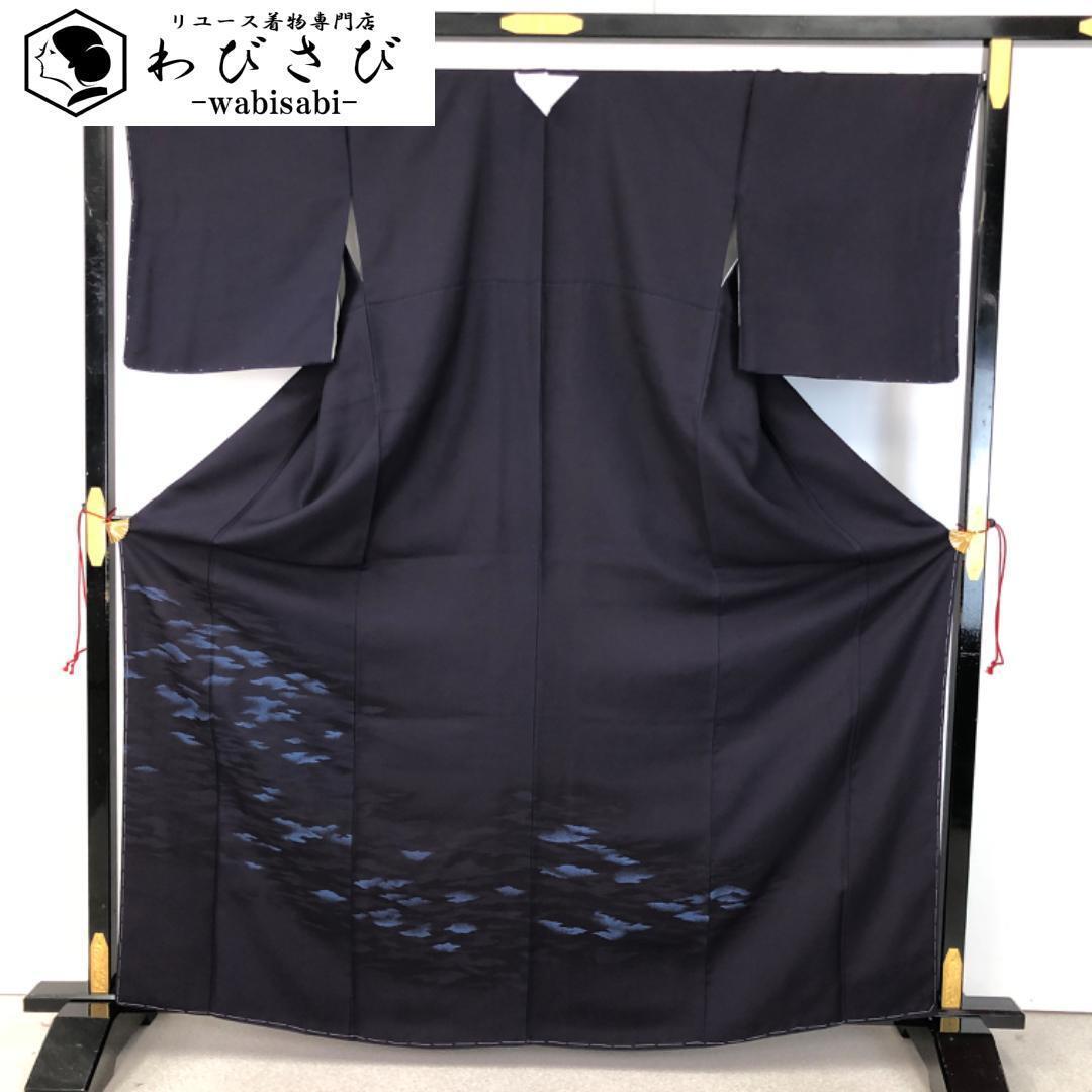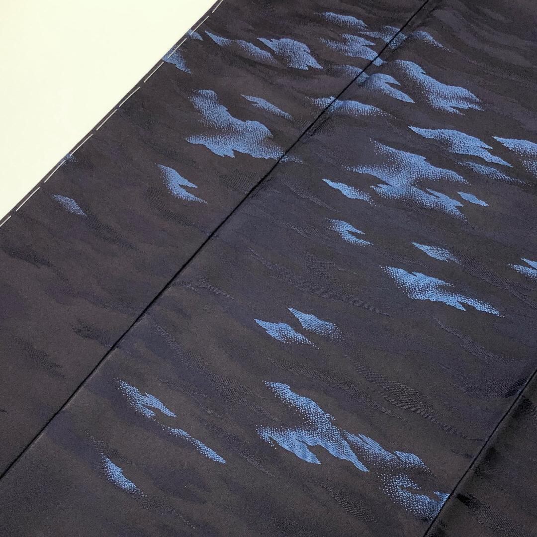 阿波藍製造技術保持者外山良治、藍染作家下波正海、褐藍色の雰囲気の良い藍色の染色に上品な霞模様の柄裄がデザインされた素敵なお品でございます。