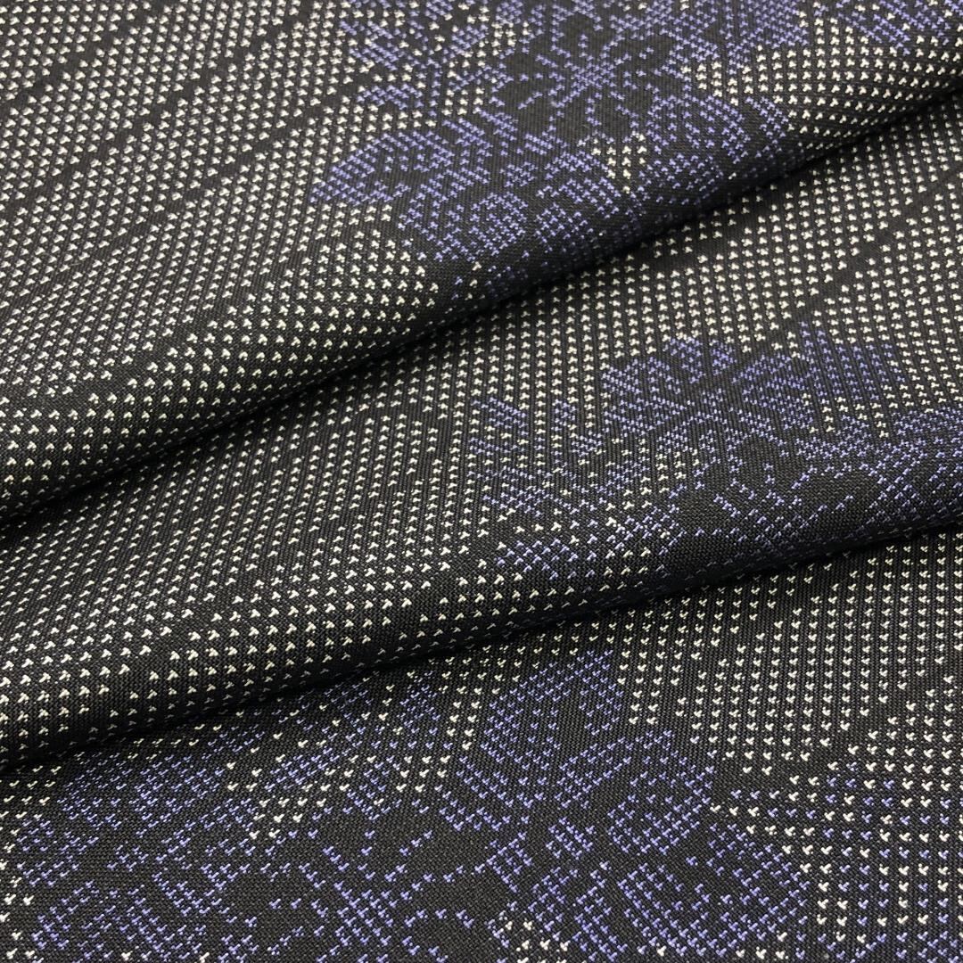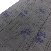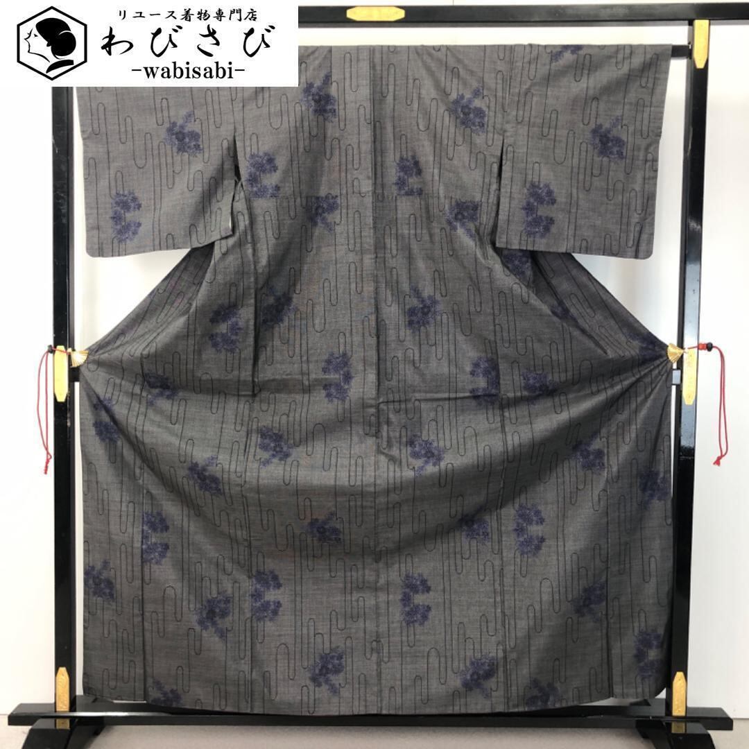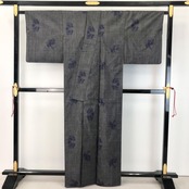 泥染の雰囲気の良いお色味に縦柄霞模様に菊の花がデザインされた素敵な柄裄のお品でございます。