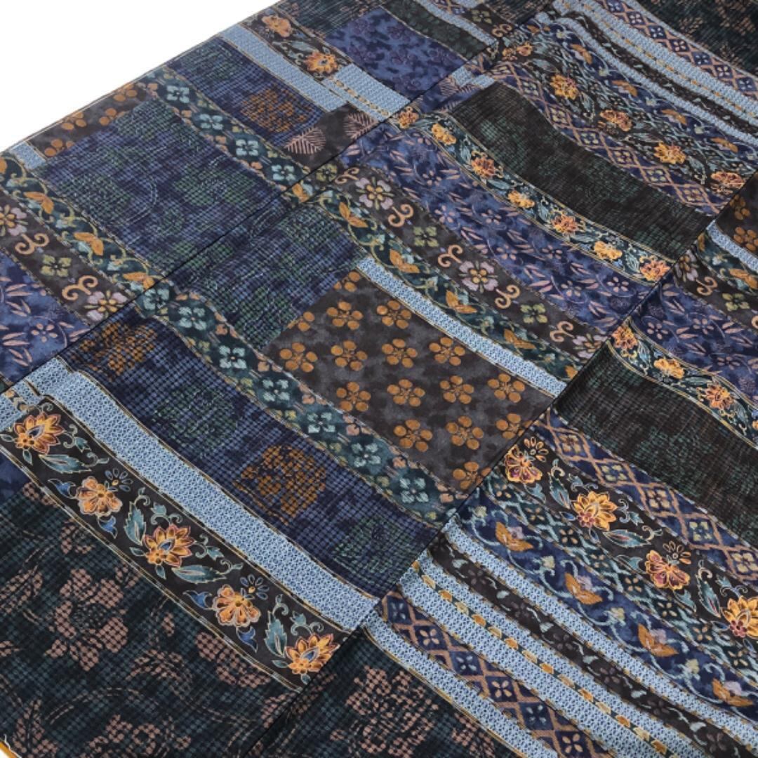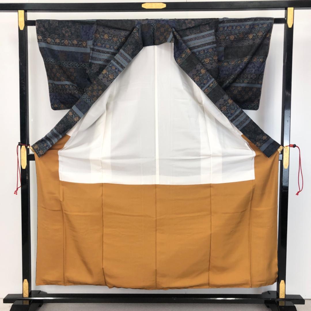 落ち着いたお色味ベースの多様な横段花唐草模様がデザインされた雰囲気の良い素敵な柄裄のお品でございます。