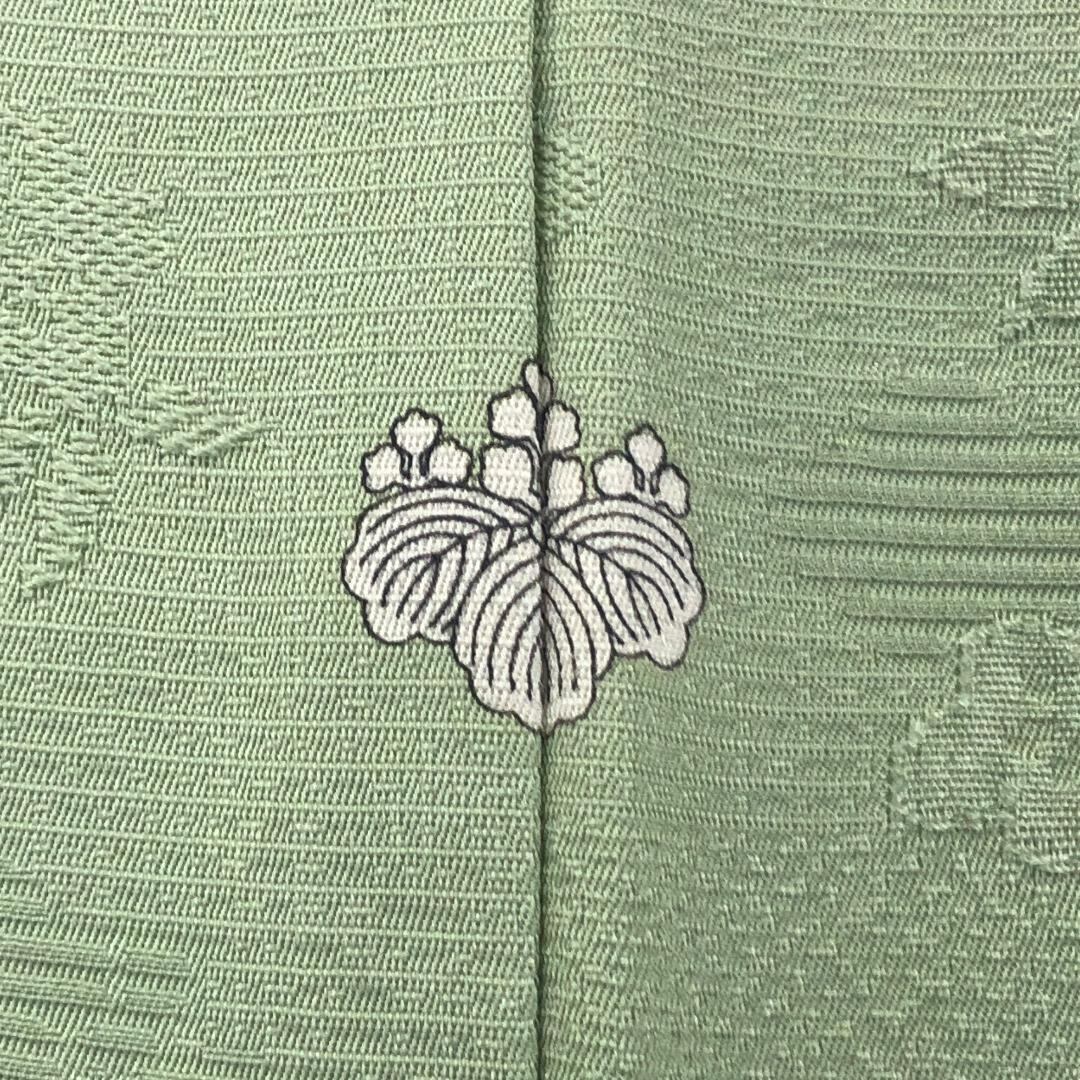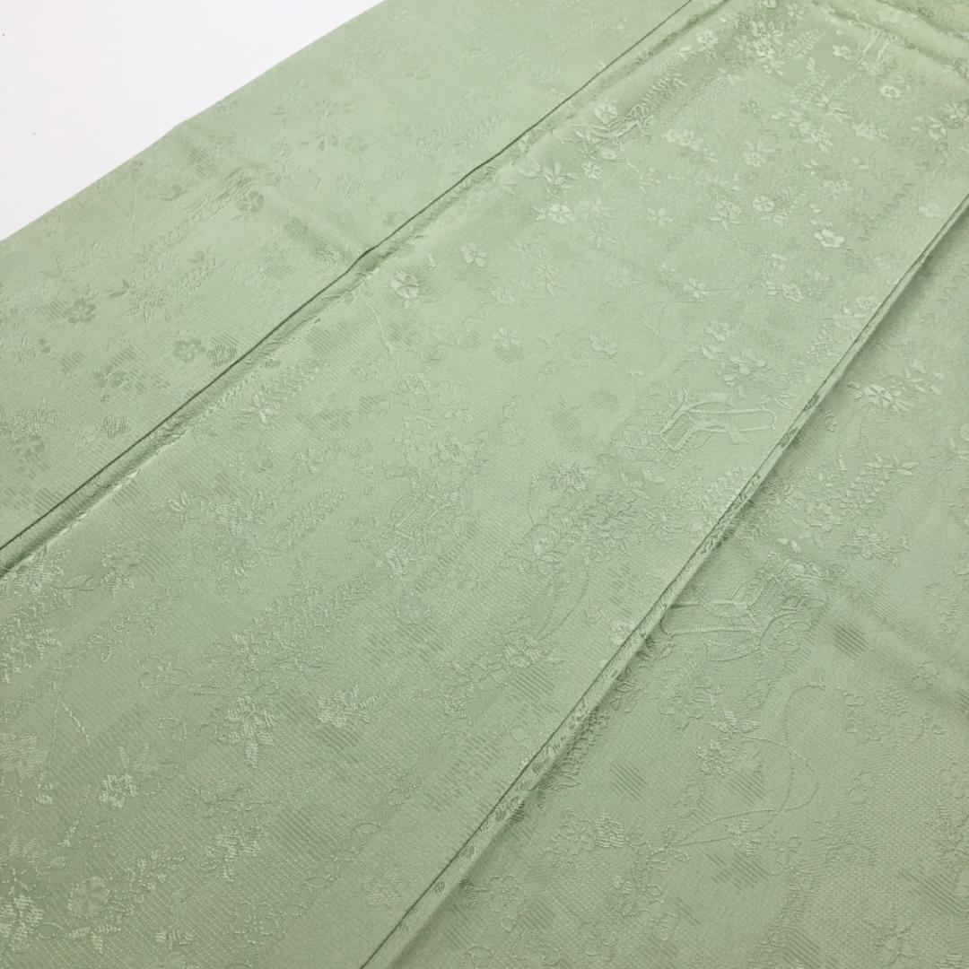 薄浅緑色の雰囲気の良いお色味に花模様の地模様がデザインされた素敵なお品でございます。