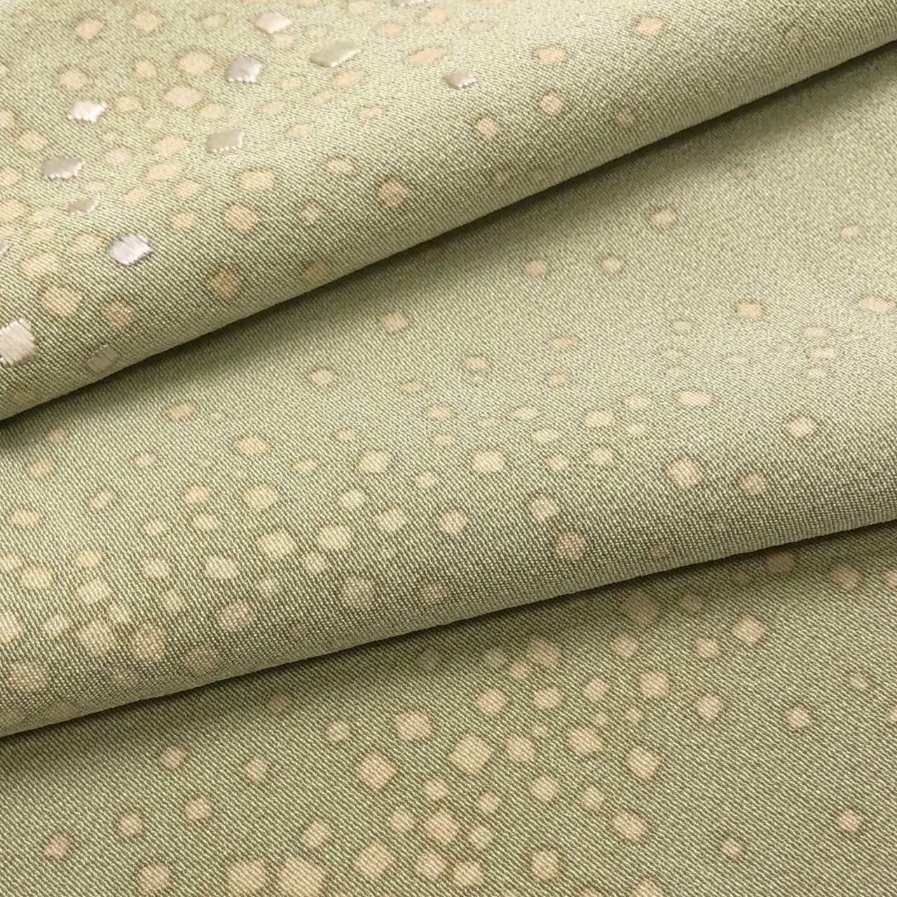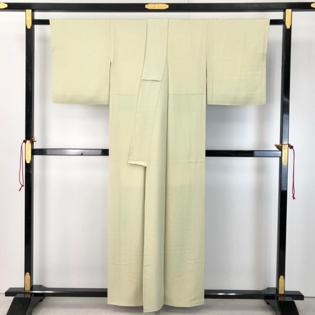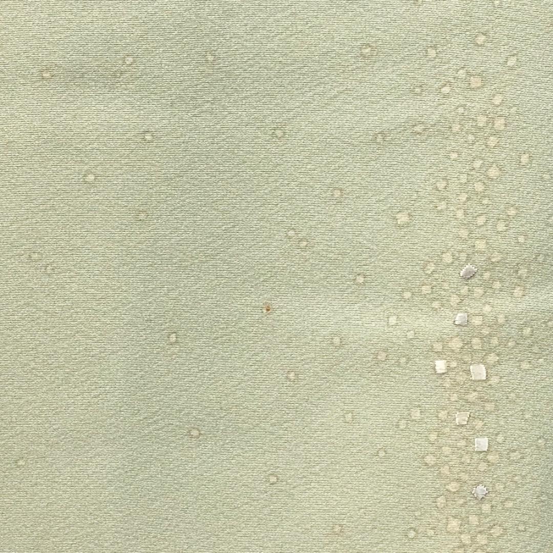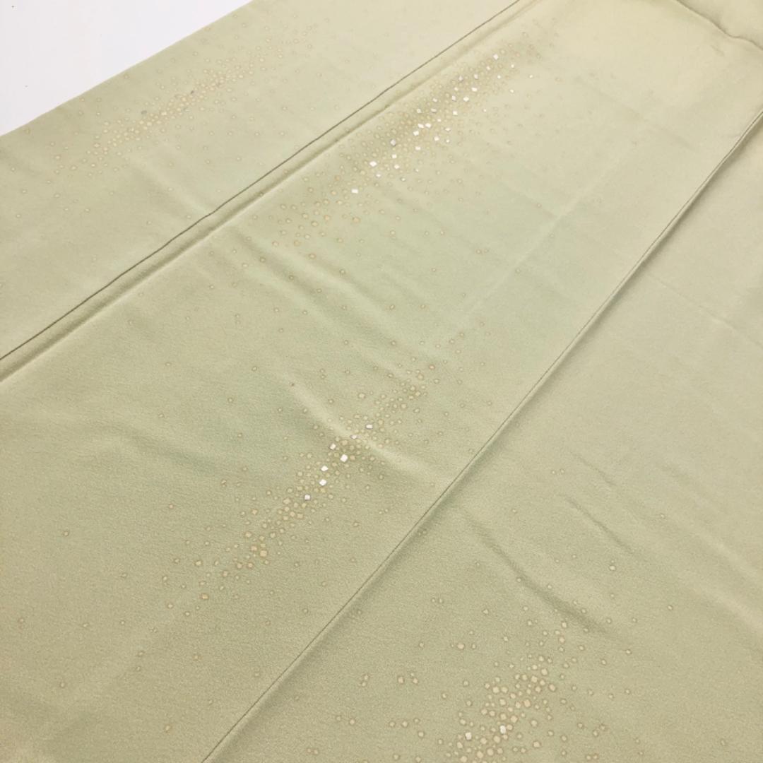 硫黄色の上品なお色味に一部刺繍の四角柄が散りばめられたデザインの素敵な柄裄のお品でございます。