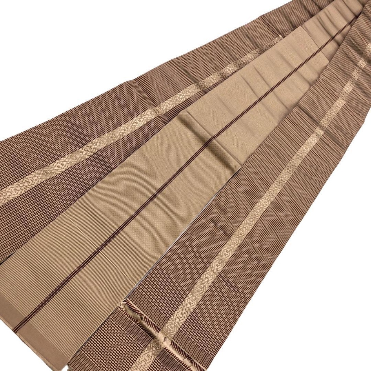 香色のお色味に縦縞模様がデザインされた素敵なお品でございます。