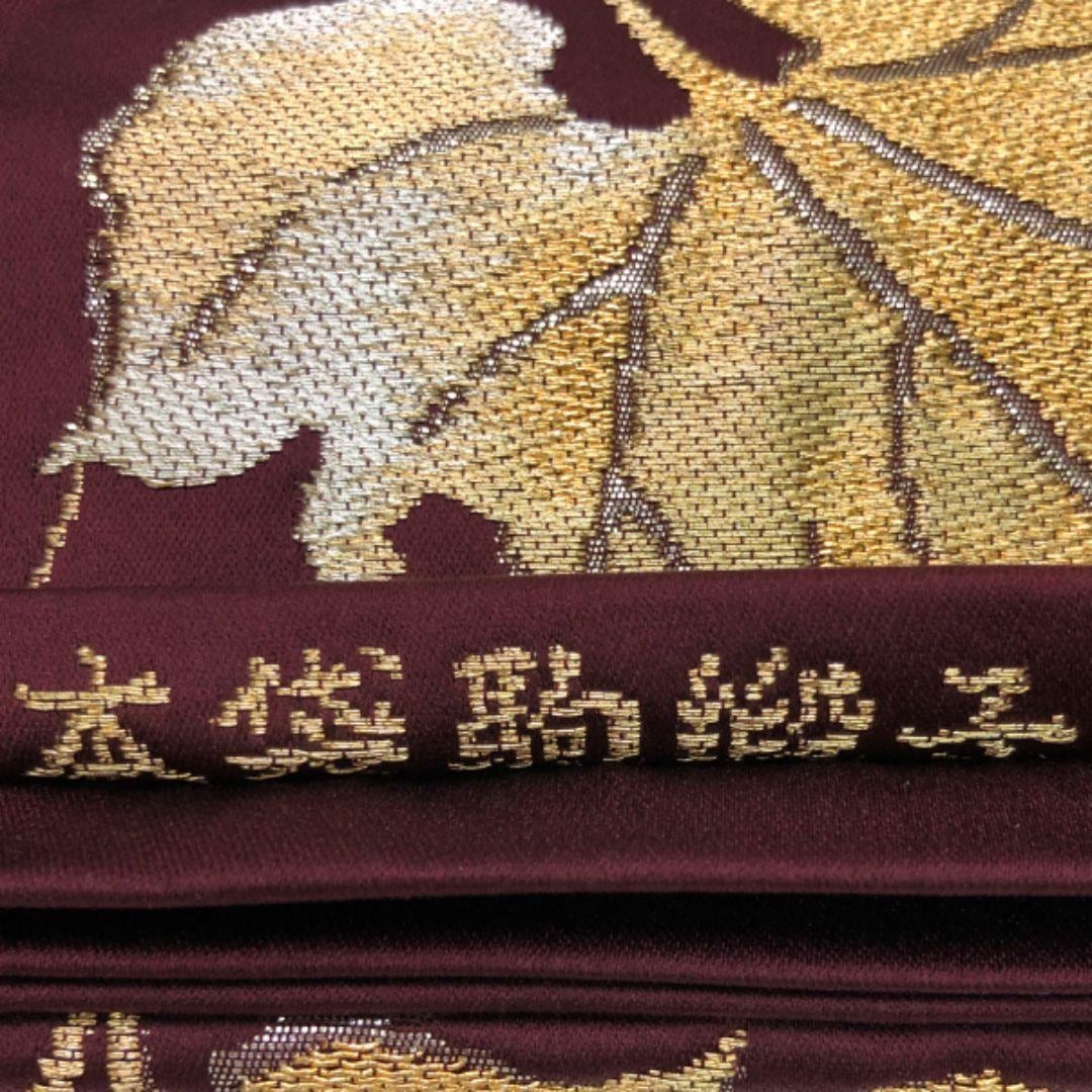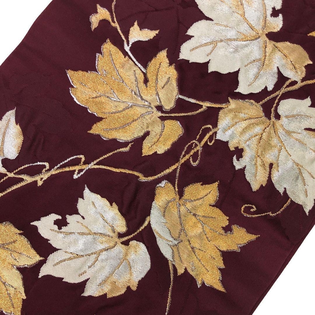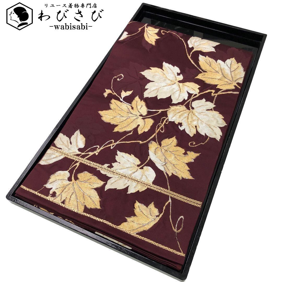 袋帯 本袋駒緞子 古城の秋 蔦の葉 葡萄酒色 O-5052 着物 きもの kimono 和服 和装 中古 リサイクル着物 【送料無料】
