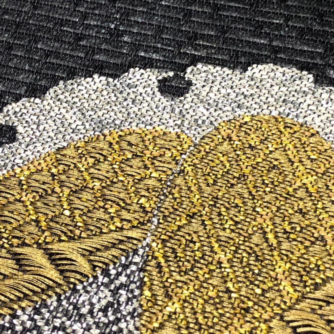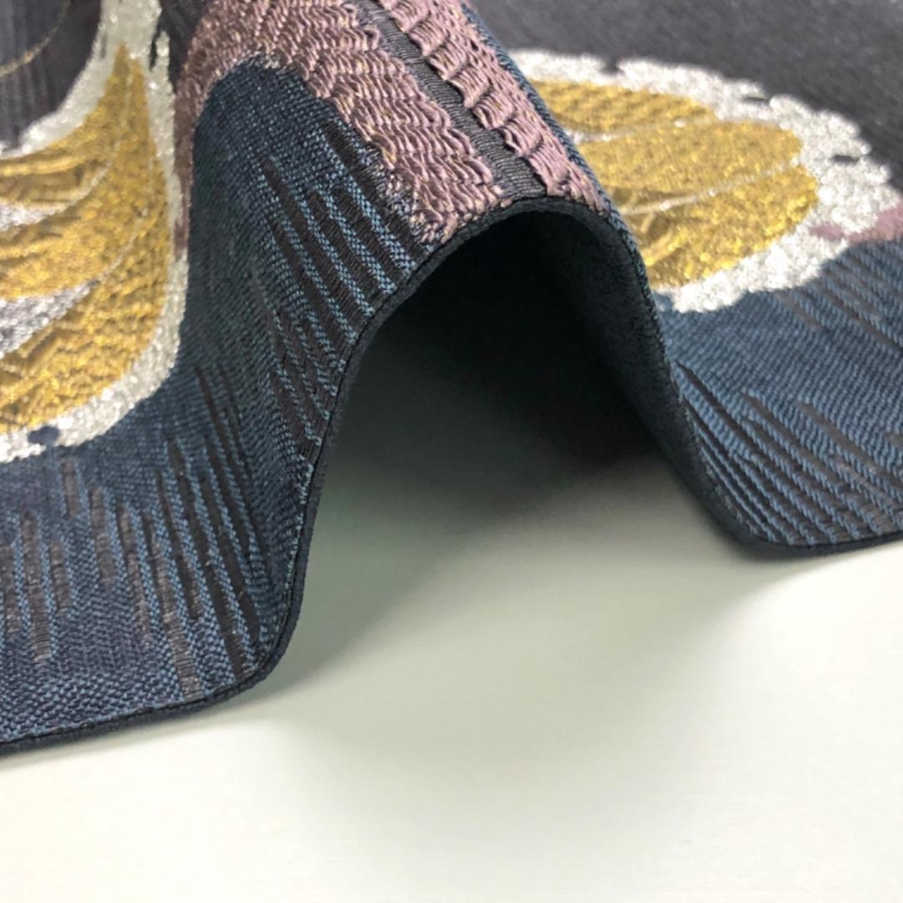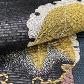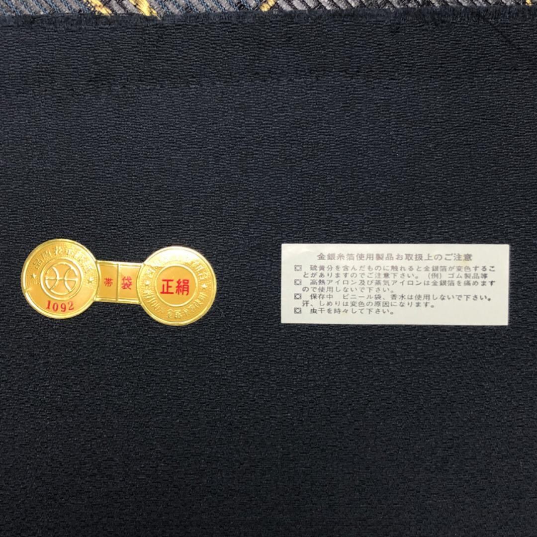 墨色の落ち着いたお色味、雪輪に笹の葉模様の雰囲気の良い柄行がデザインされた素敵なお品でございます。