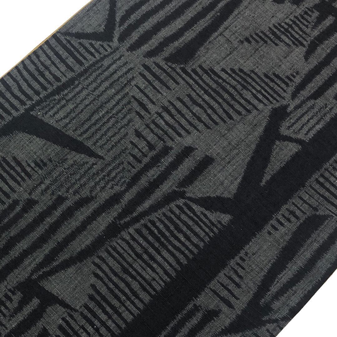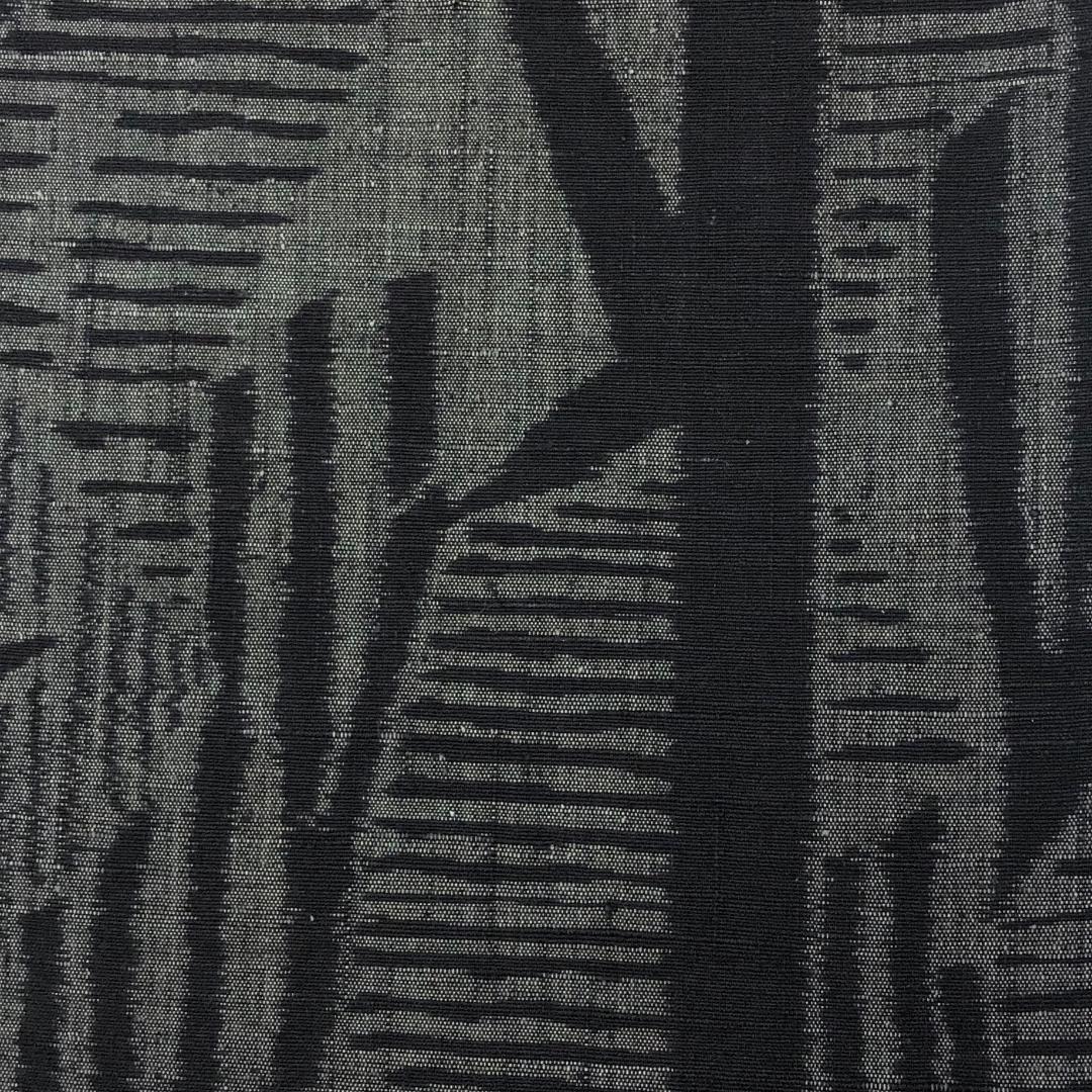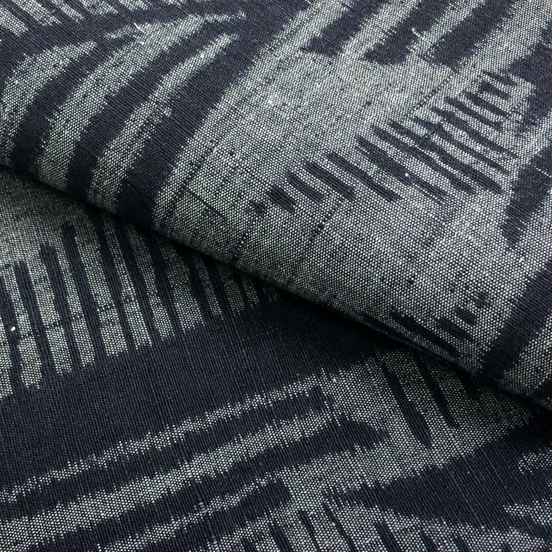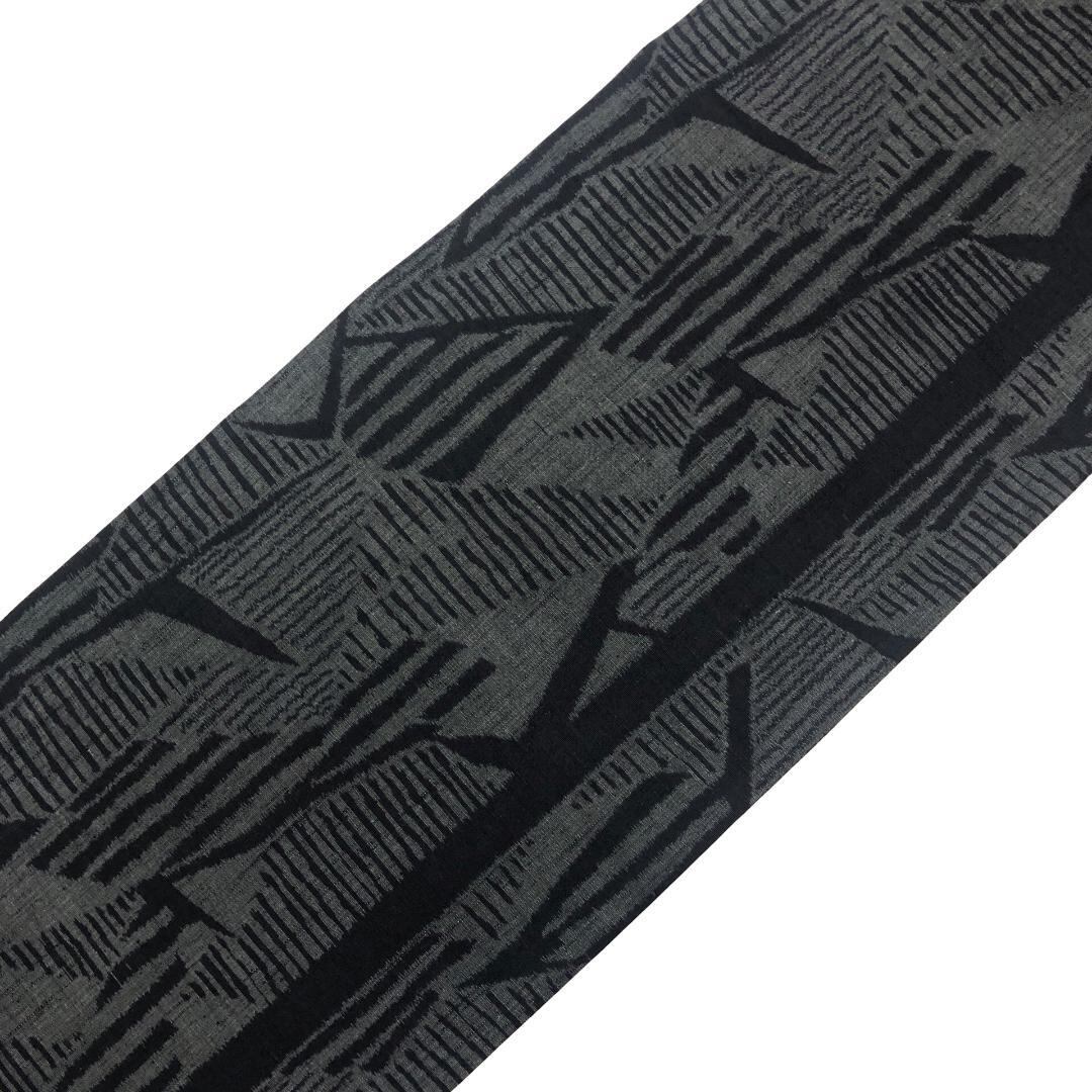 灰色のお色味に雰囲気の良い抽象模様がデザインされた柔らかい紬地の素敵なお品でございます。