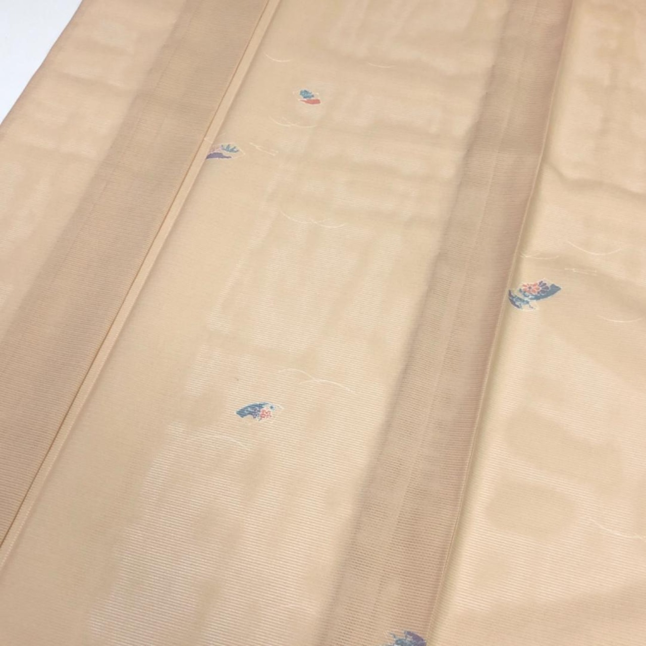 香色のお色味、地紙に花柄模様、芝紋がデザインされた素敵な柄裄のお品でございます。