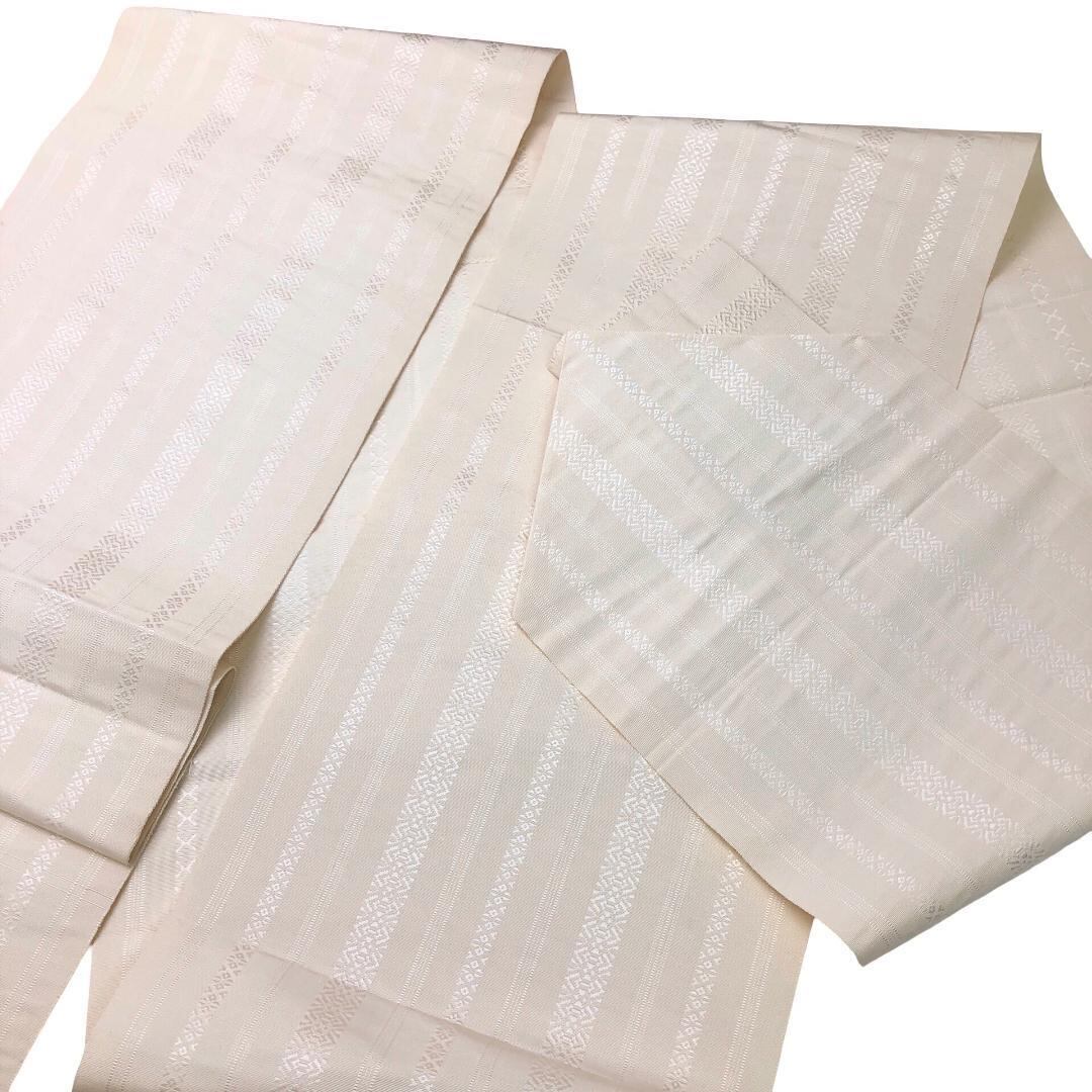 生成色の上品なお色味に博多献上の柄裄がデザインされた気持ち良い絹鳴りのする素敵なお品でございます。