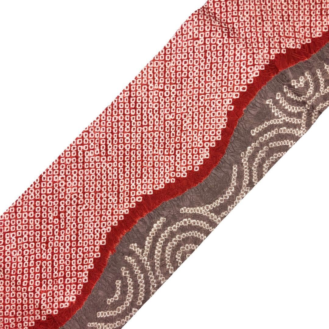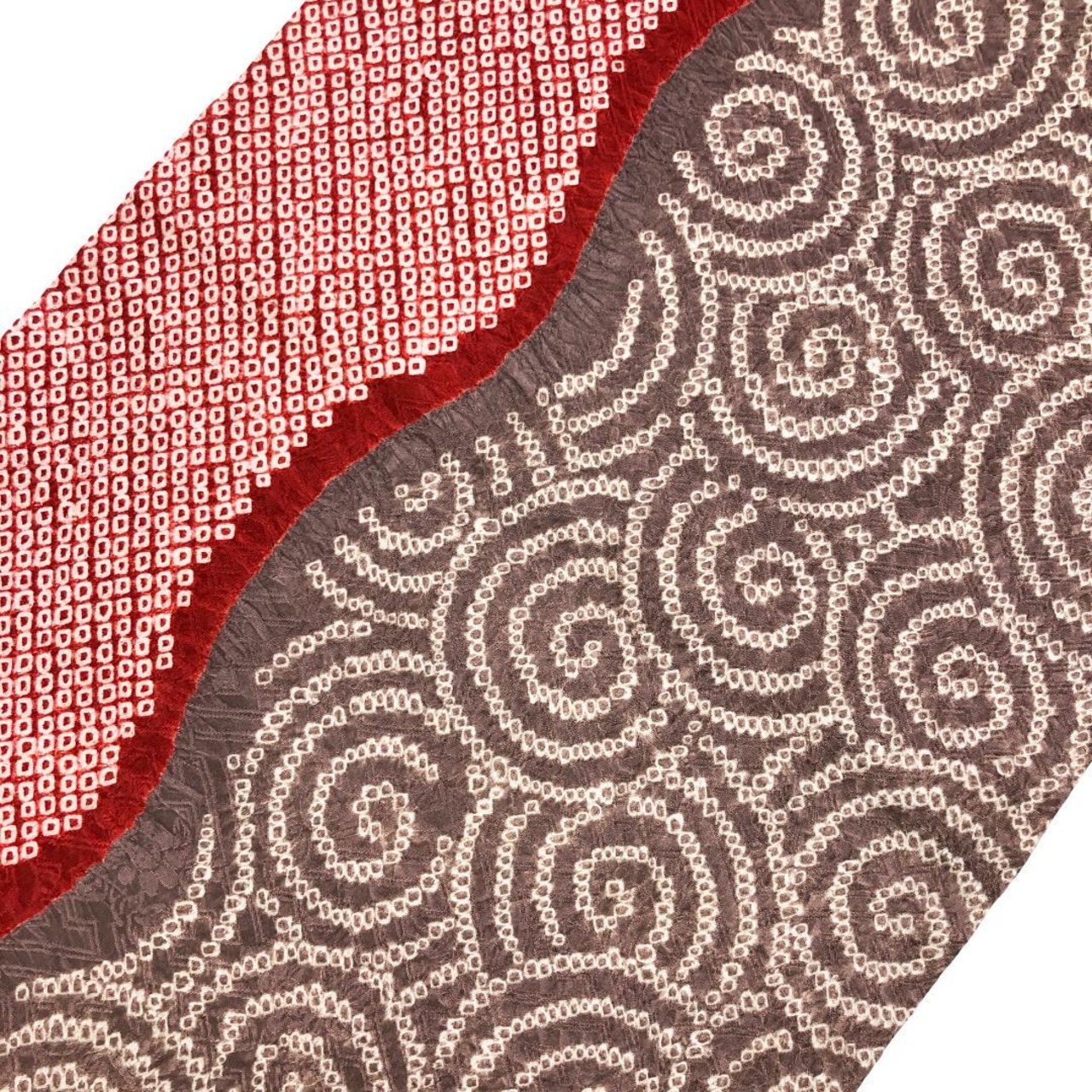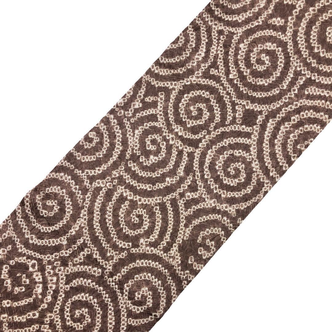 鼠色ベースのお色味、渦巻き模様の絞りの柄裄がデザインされた素敵なお品でございます。