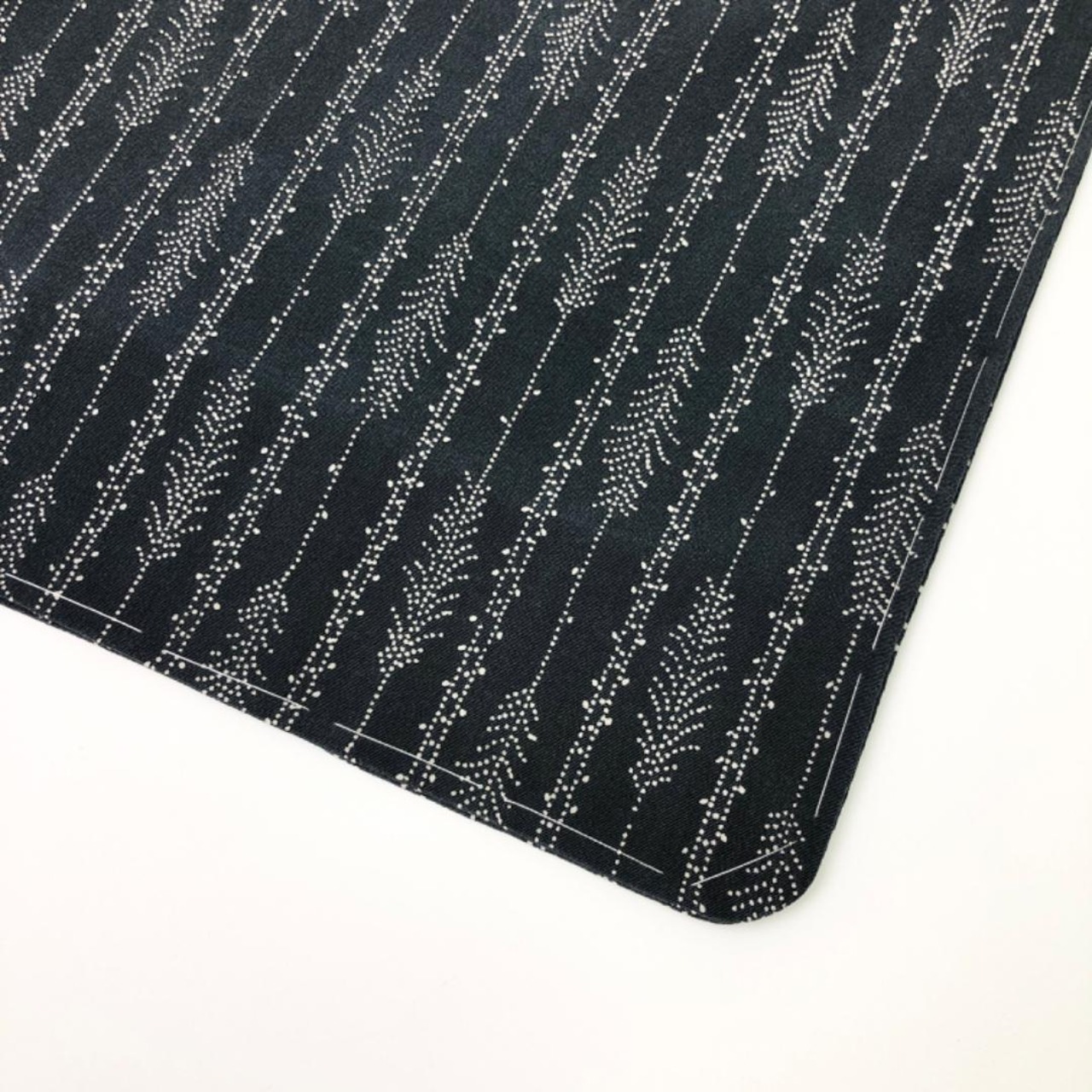 納戸鼠色の落ち着いたお色味に縦縞草象模様の柄裄がデザインされた素敵なお品でございます。