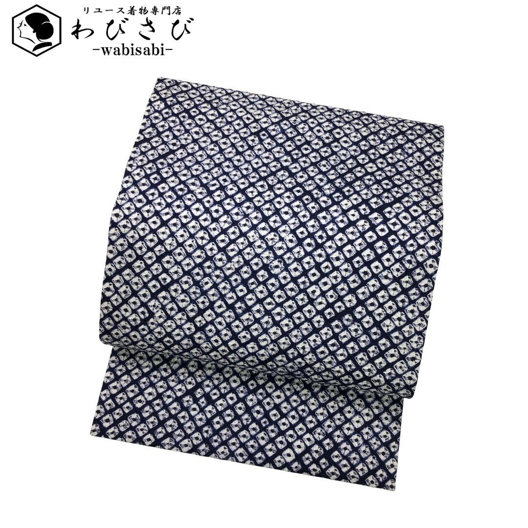 名古屋帯 絞り模様 印度藍色 O-5060 着物 きもの kimono 和服 和装 中古 リサイクル着物 【送料無料】