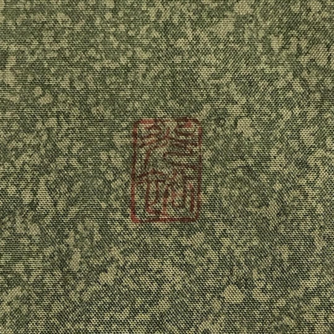 訪問着 本場大島紬 染大島 作家物 霞に花模様 柳煤竹色 K-4744 着物 きもの kimono 和服 和装 中古 リサイクル着物 【送料無料】