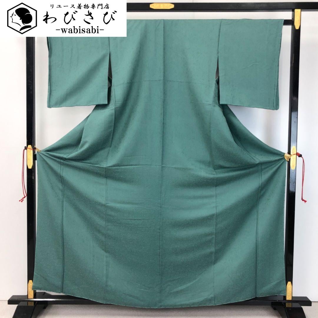 色無地 山藍摺色 花鳥地模様 縮緬 しつけ糸 K-4752 着物 きもの kimono 和服 和装 中古 リサイクル着物 【送料無料】
